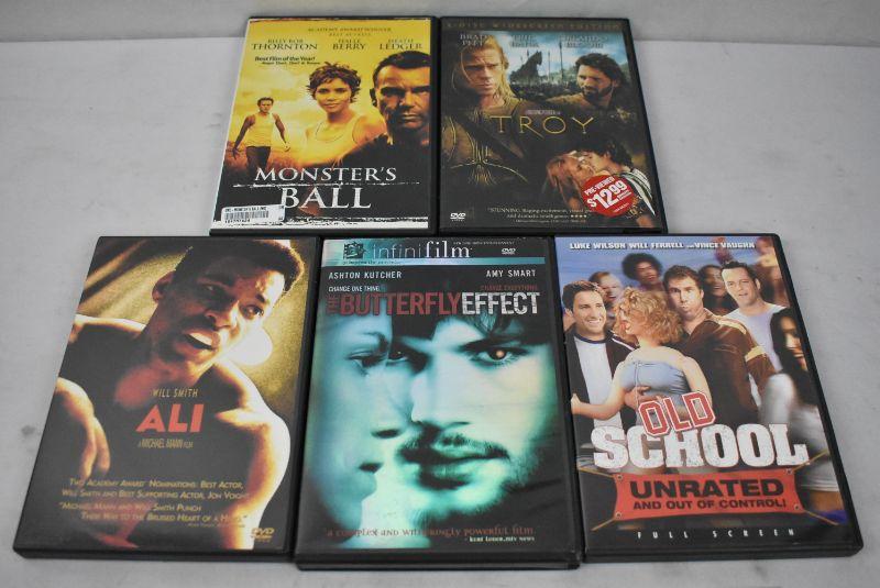 Qty 5 DVDs Rated R - Troy, Monsters Ball, Ali, Old School, Butterfly Effect