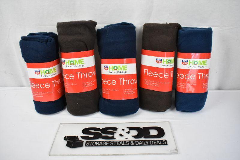 Qty 5 Fleece Throw Blankets (3 Navy 2 Brown) 5-" x 60" each - New