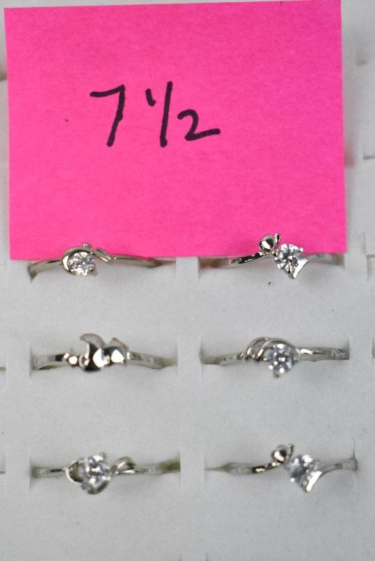 Qty 6 (5 Different) Costume Jewelry RIngs, size 7.5 - New