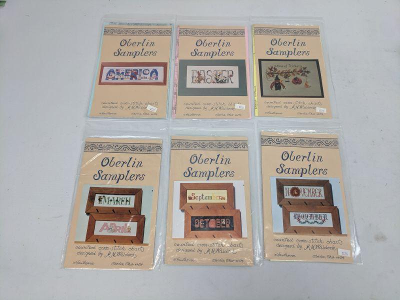 Qty 6 Cross Stitch Patterns: America, Easter, Thanksgiving, March/April, September/October, November/December by Oberlin Samplers