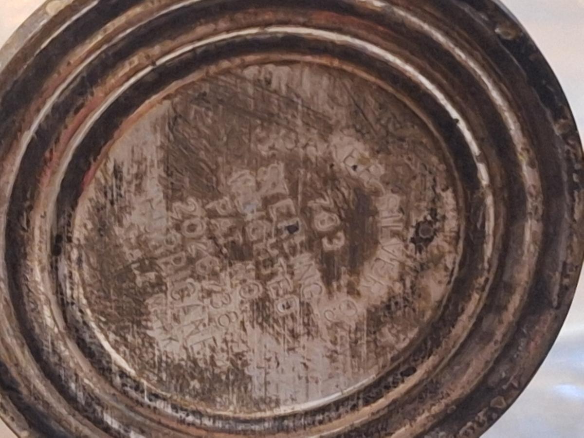 The shakers are marked on the bottom with model number 703. Sterling weighted. It also shows the patent number.