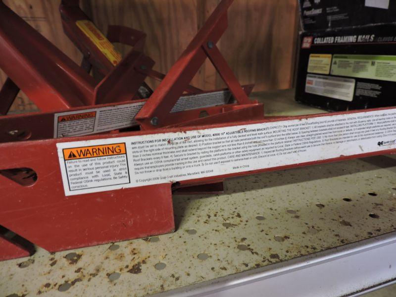 Set of 8 Qual Craft 2500 Adjustable Roofing Brackets. Please read Terms and Conditions before placing a bid. Pick up is Friday, October 25th between 4 and 7, and Saturday, October 26th between 9 and 1. Please bring boxes, tools, and muscle to help move your items. Props included in photos are not included in listing. All measurements are approximate.
