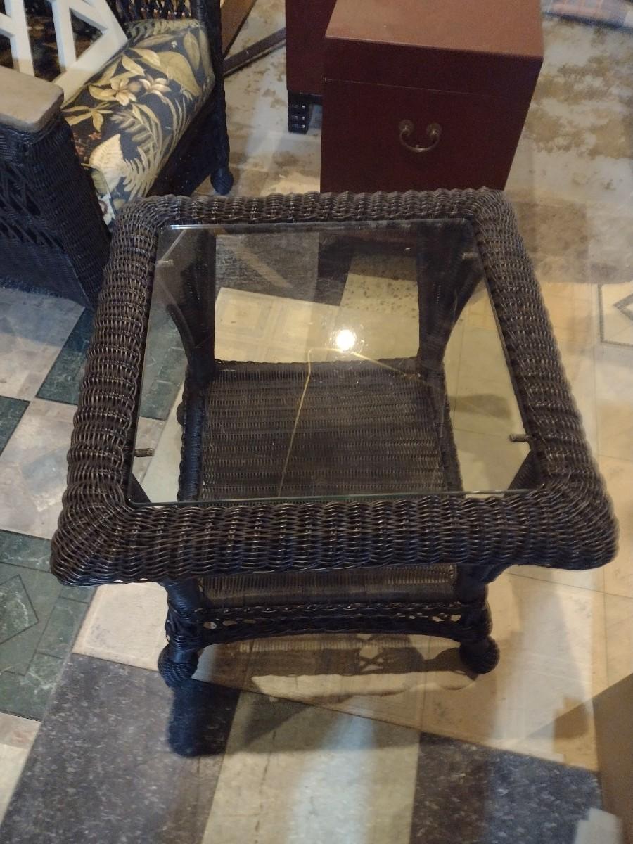 Quality Composite Wicker Design Outdoor Patio Square Side Table with Glass Insert Choice A