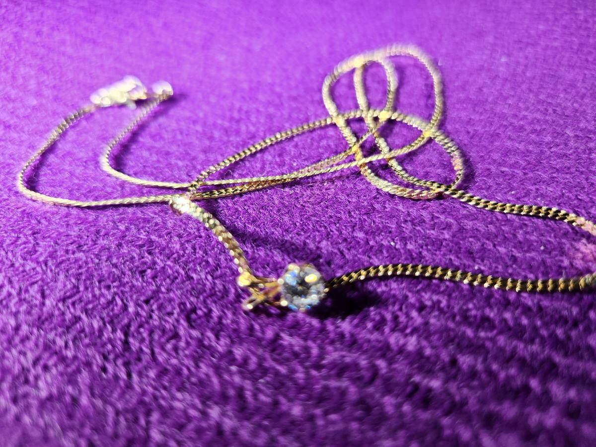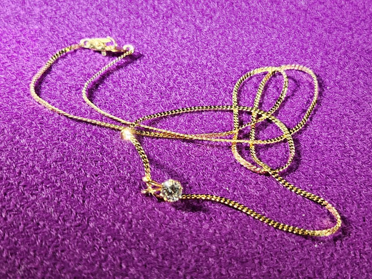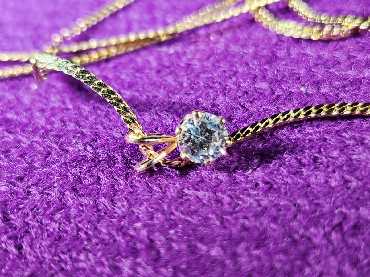 This auction lot is for a Quality Costume Gold-Tone Necklace w/Clear Glass Gem. The necklace measures about 22-inches. There are no markings on this item. The stone is a very good quality glass gem.