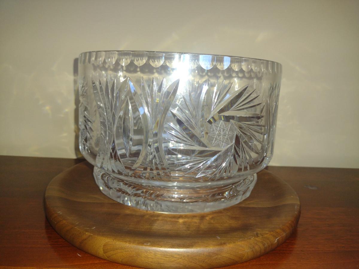 Quality Crystal Bowl with American Walnut Under Plate