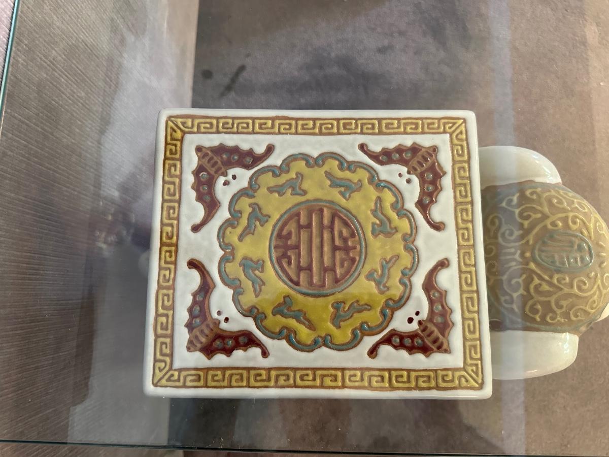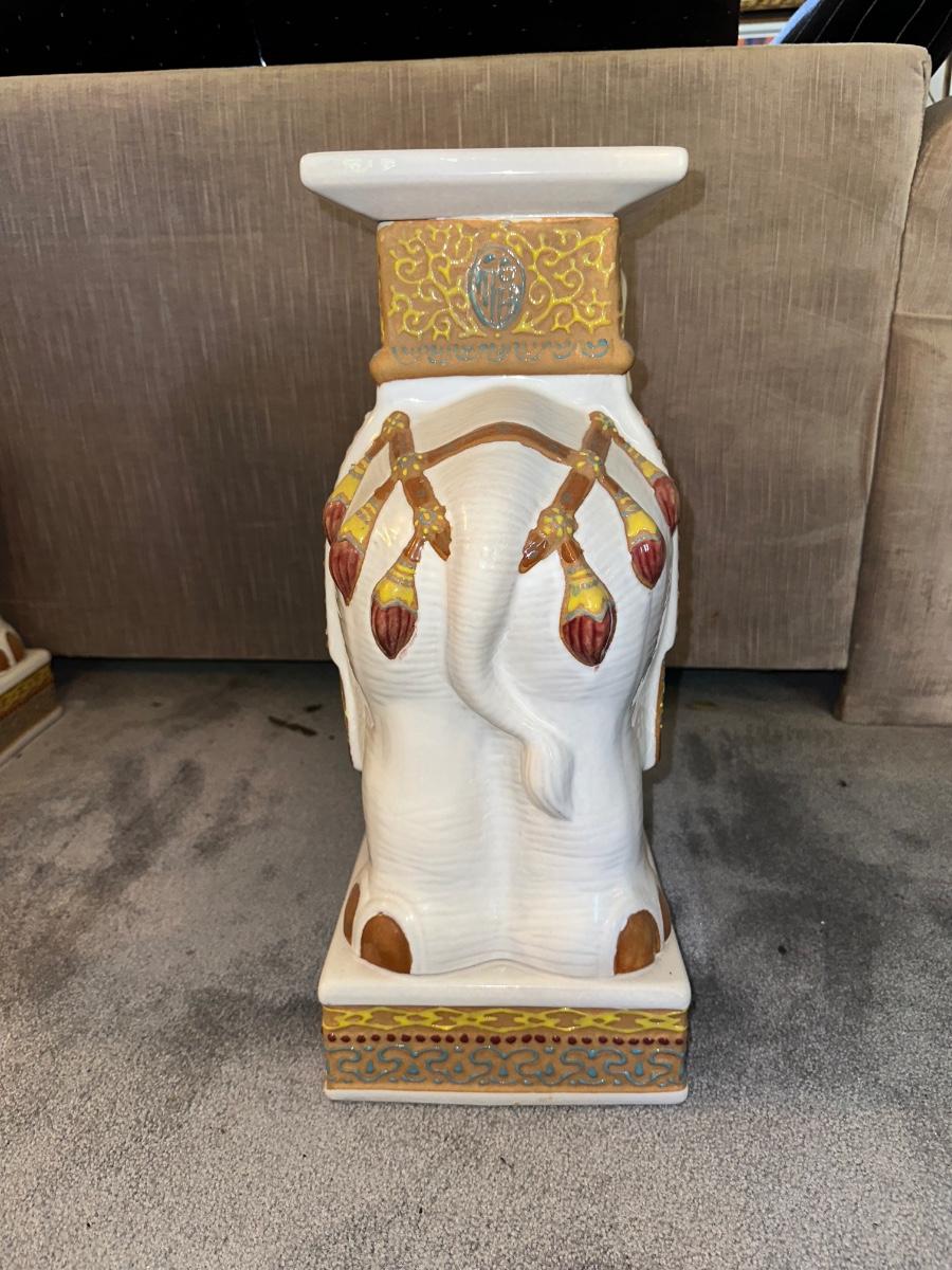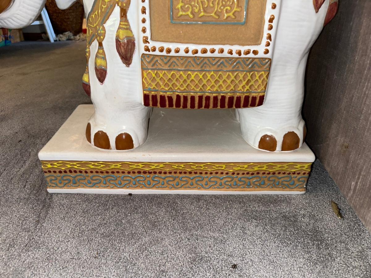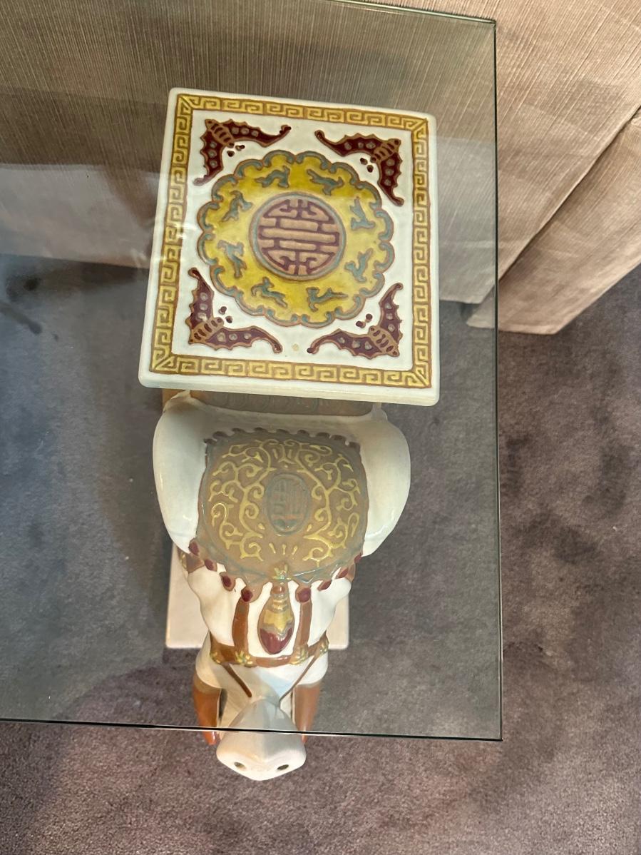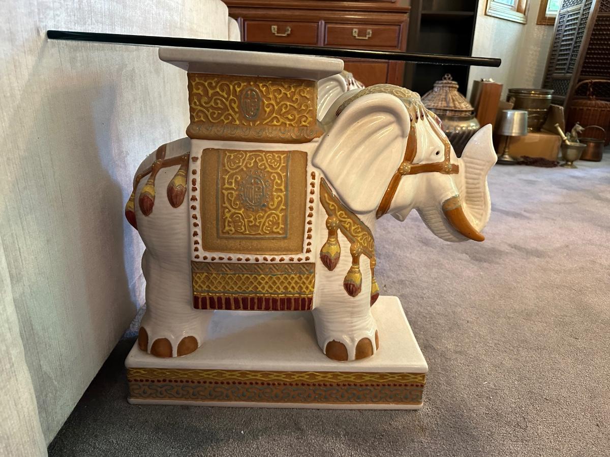 HAND PAINTED, GLAZED ELEPHANTS W/GLASS TOP