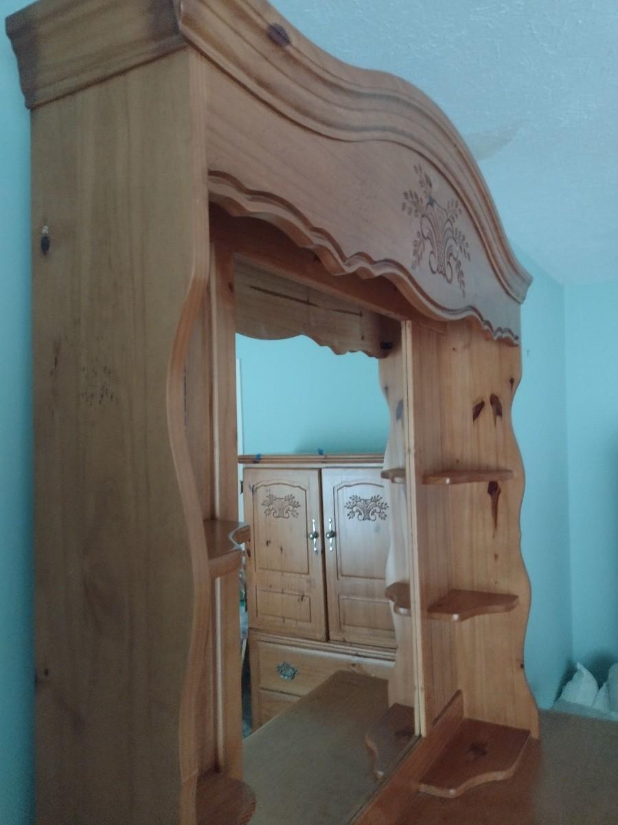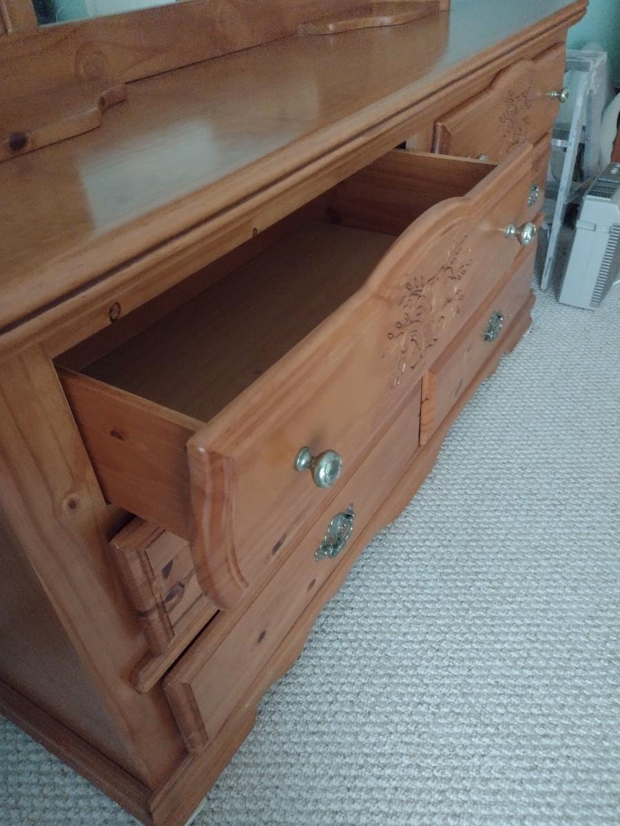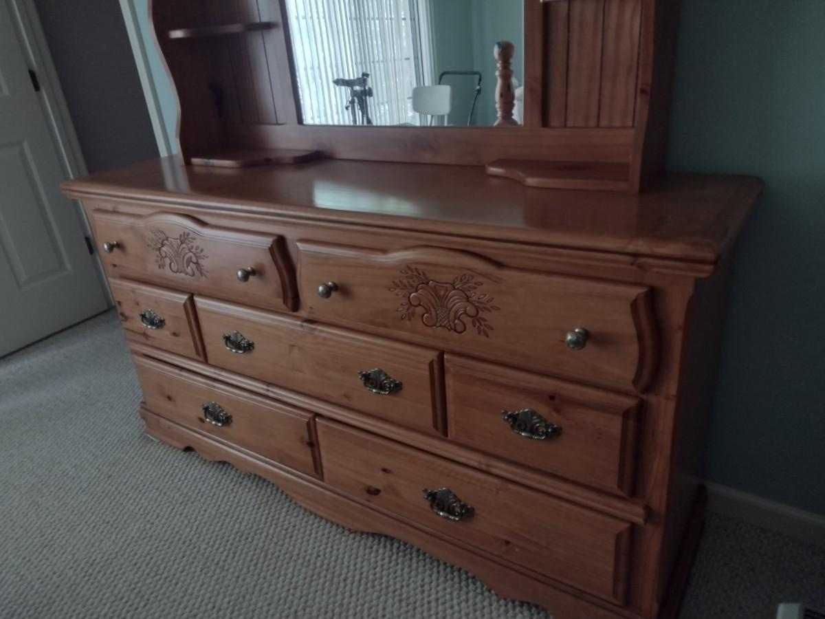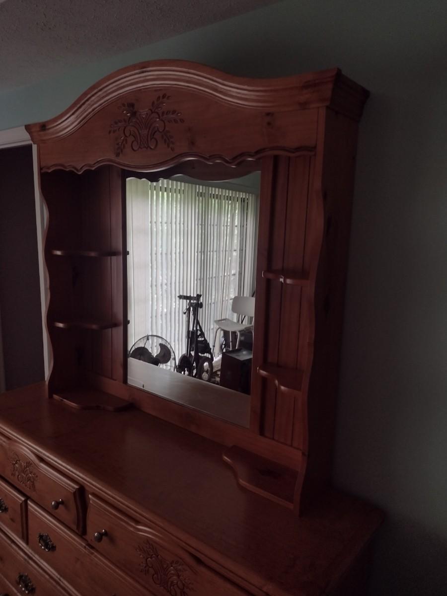 Quality Solid Wood Knotted Pine Stretch Dresser with Mirror Hutch