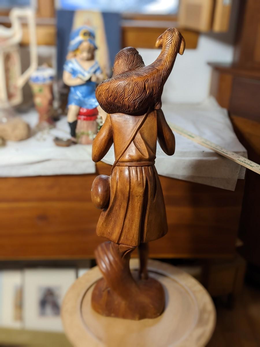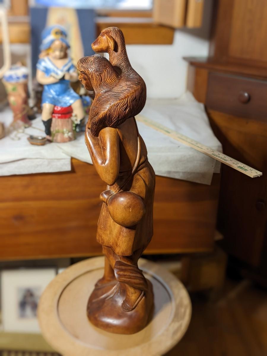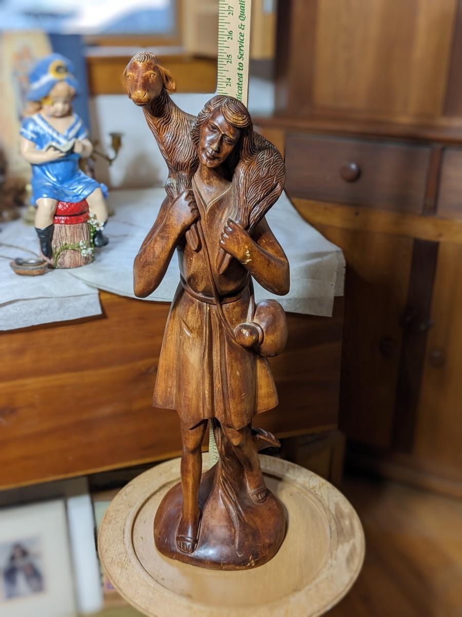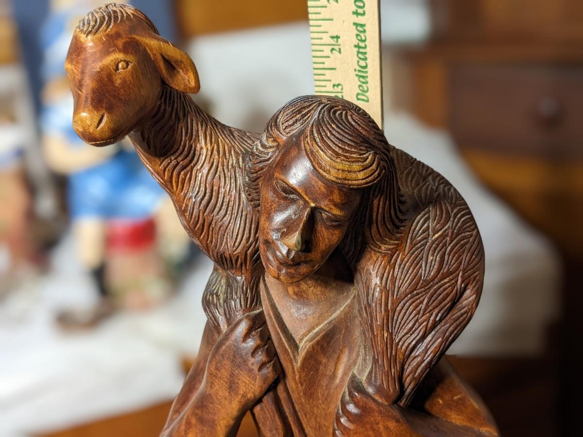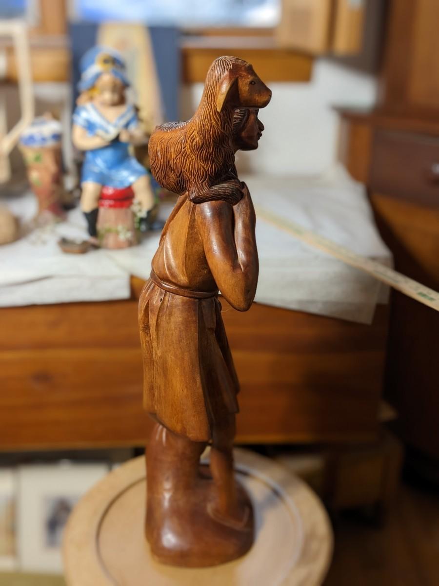 Quality Vintage Hand Carved Wood Shepard Carrying Sheep