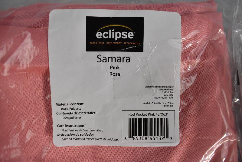Quantity 2 Eclipse Samara Light Blocking Curtains, Pink, 42" x 63" Each - New
