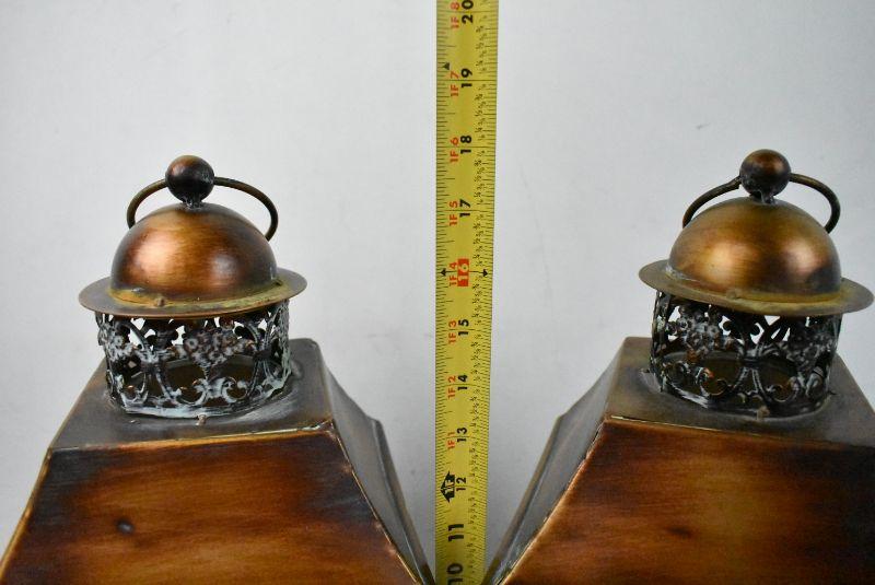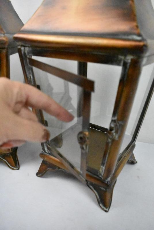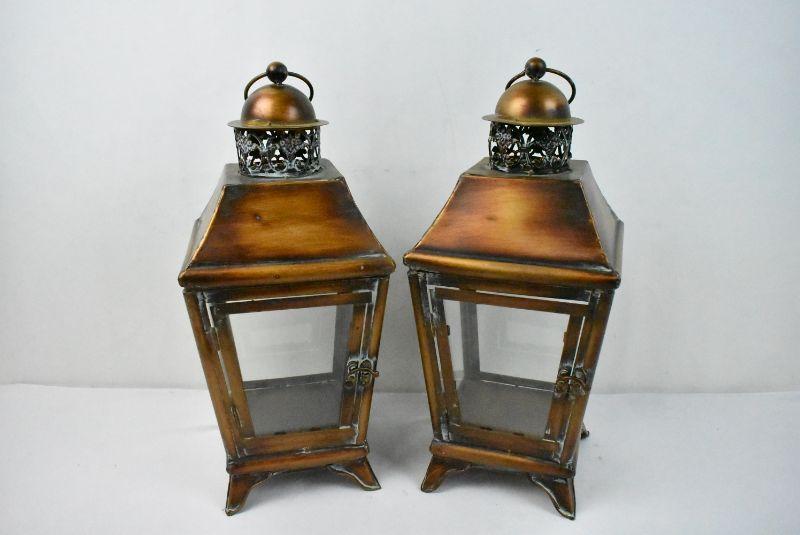 Quantity 2 Glass & Metal Lanterns, Brown/Distressed