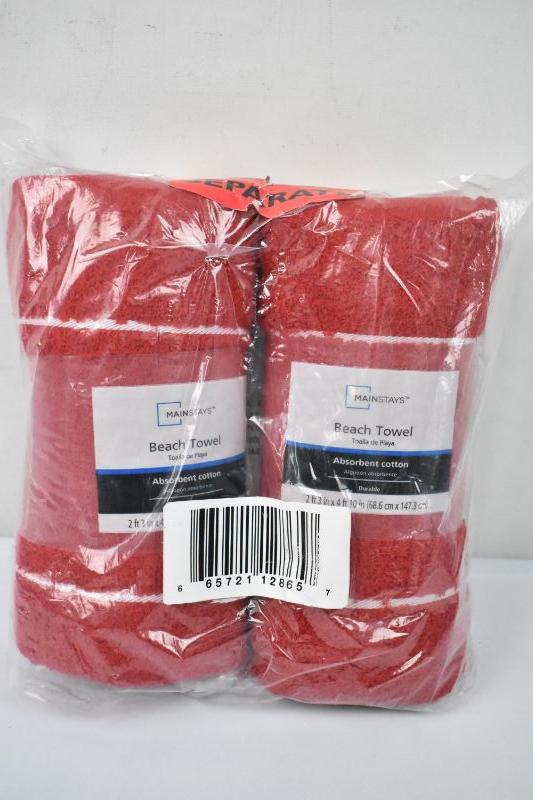 Quantity 2 Mainstays Beach Towels, Red, Lightweight - New
