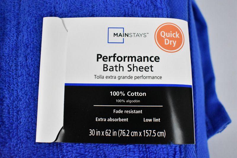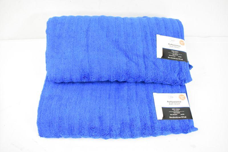 Quantity 2 Mainstays Performance Bath Sheets, Cobalt Blue - New