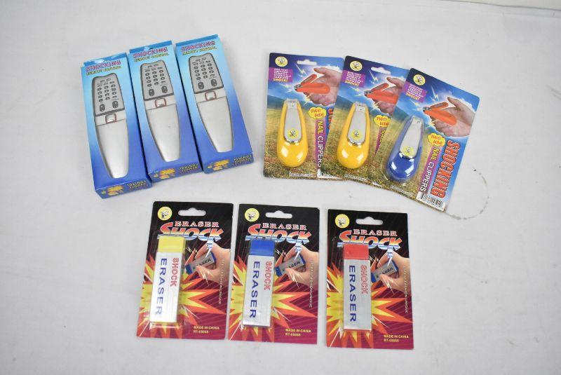 Quantity 9 Shocking Practical Joke Pranks: Remotes, Nail Clippers, Erasers - New