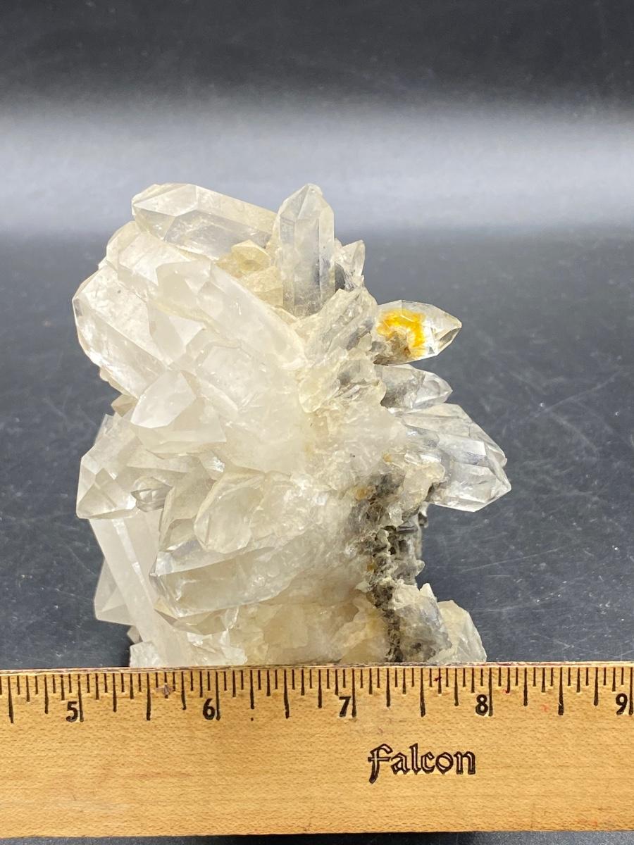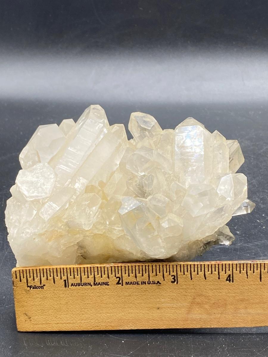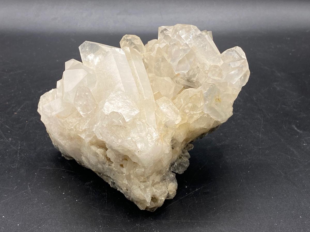 Nice representation of a quartz mineral specimen. Quartz cluster on all sides. Can be displayed sitting all any side. About 4" size. See photos.