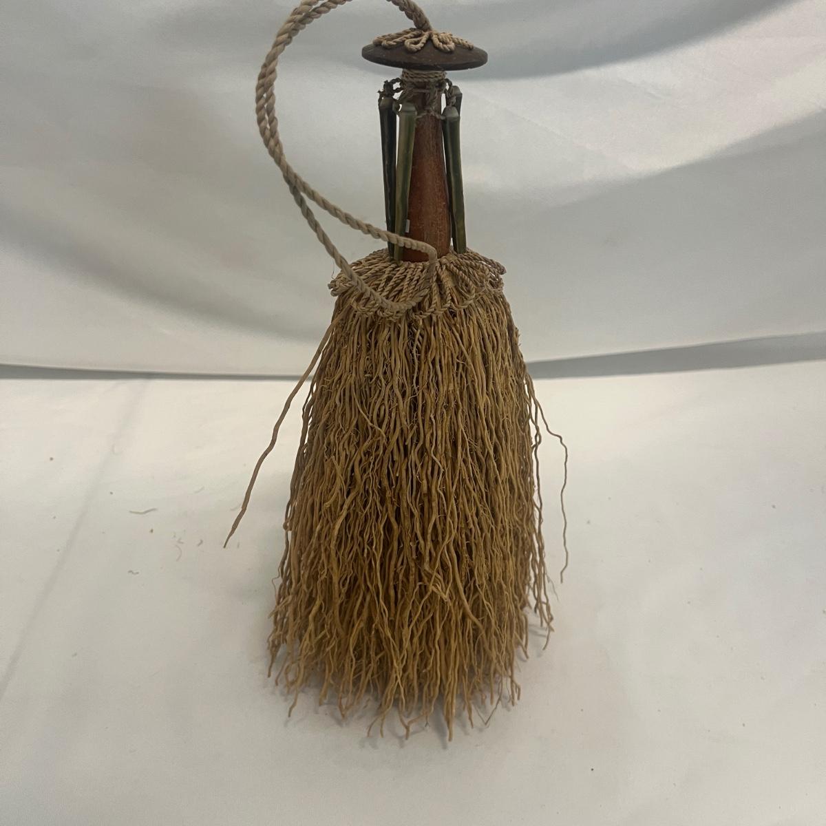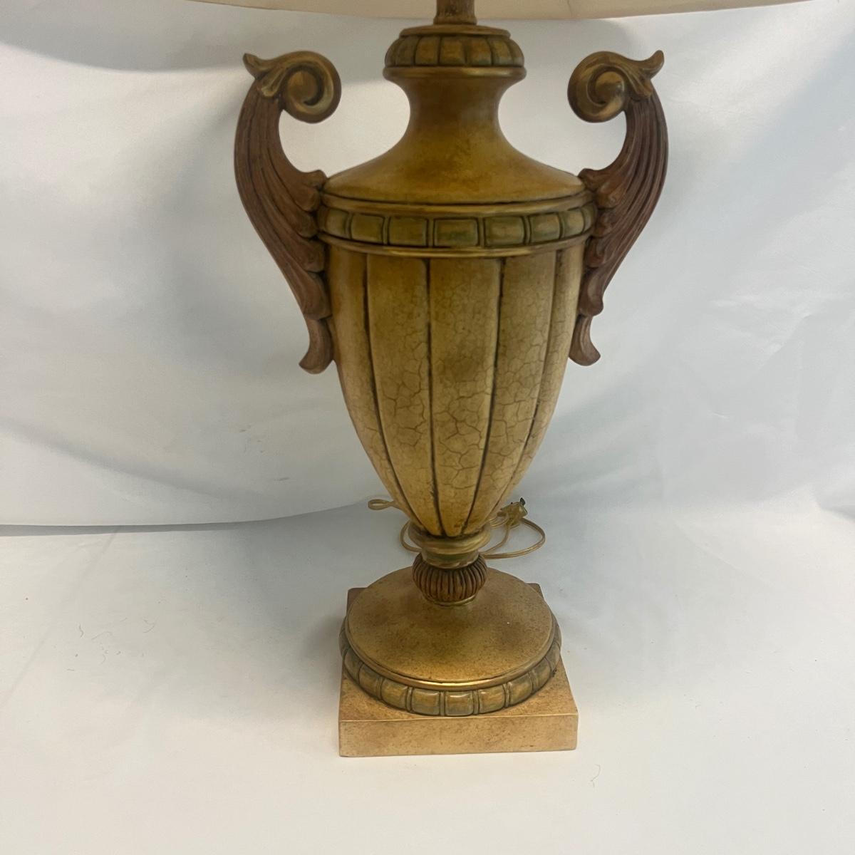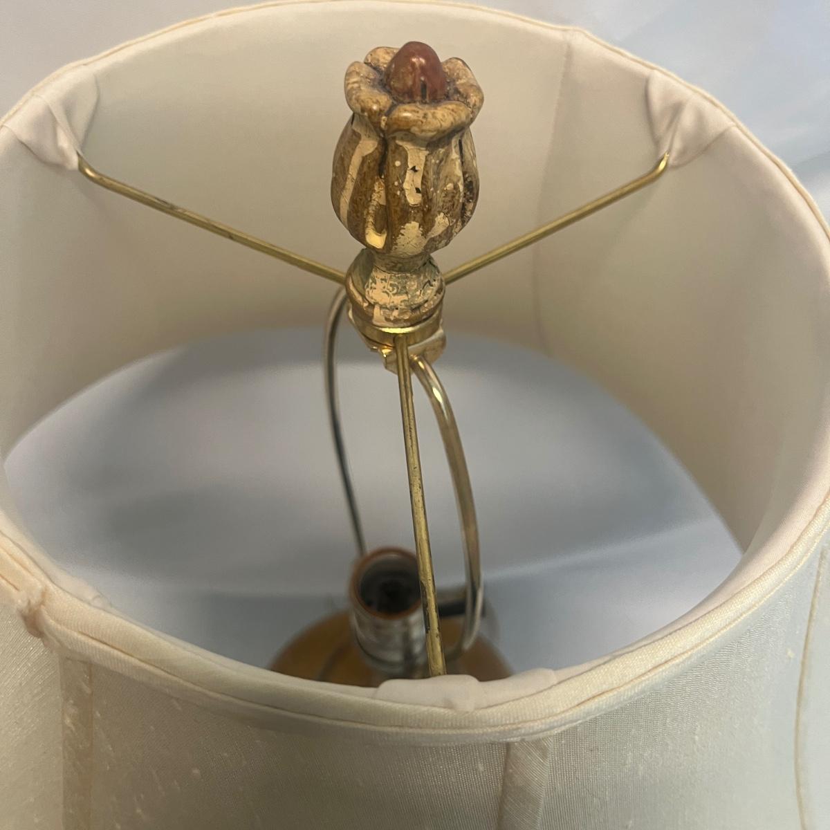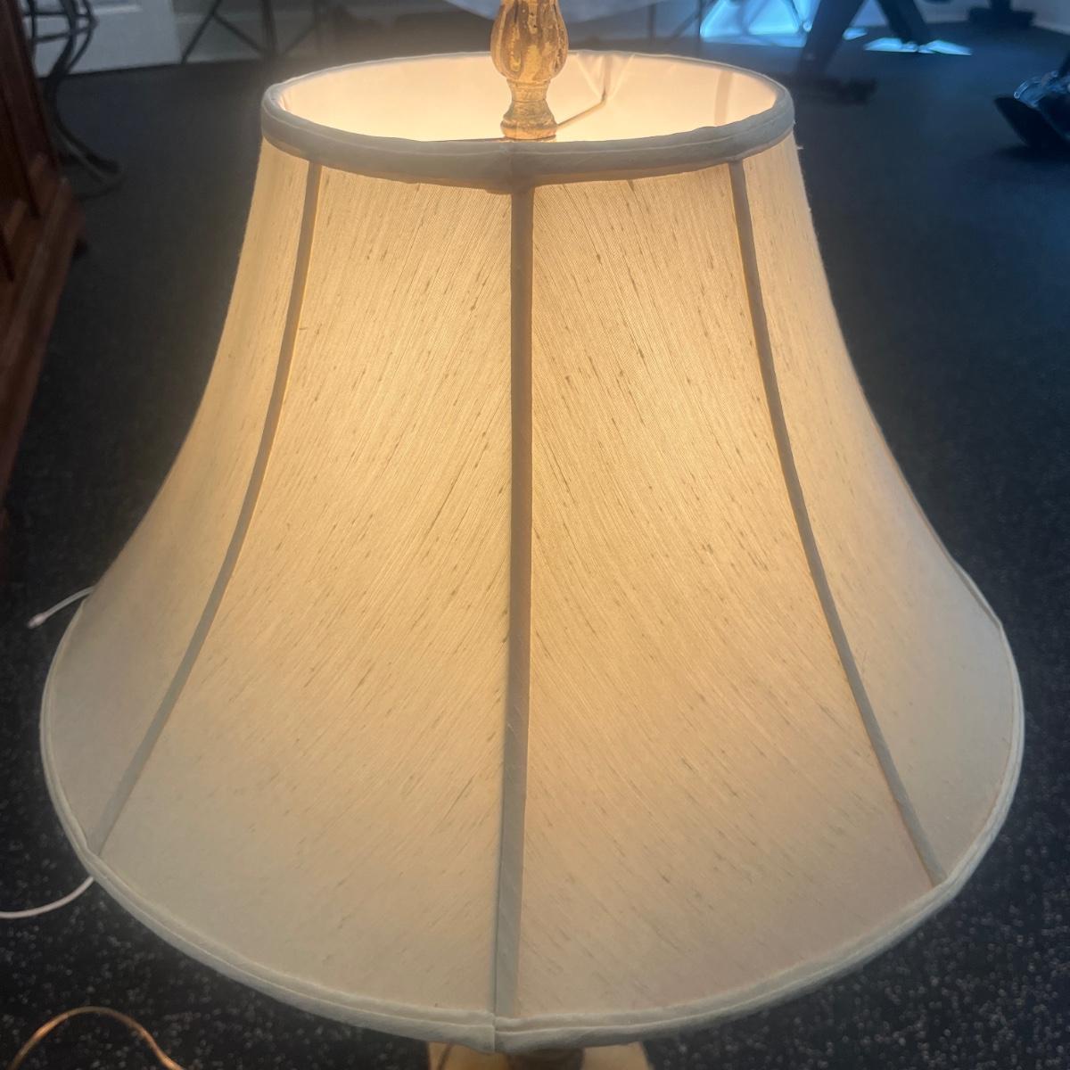This quartz clock has a resin base with metal body. The miniature broom has a wooden top. Also includes a heavy resin table lamp with on off switch. Lamp powered on when plugged in and measures 11” x 7” x 32”H not including shade. Clock was not tested as it has no battery.