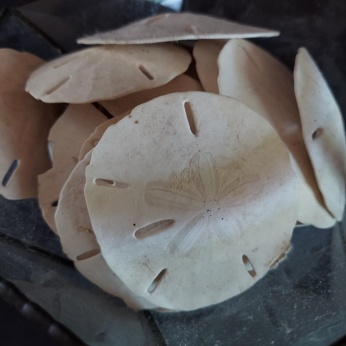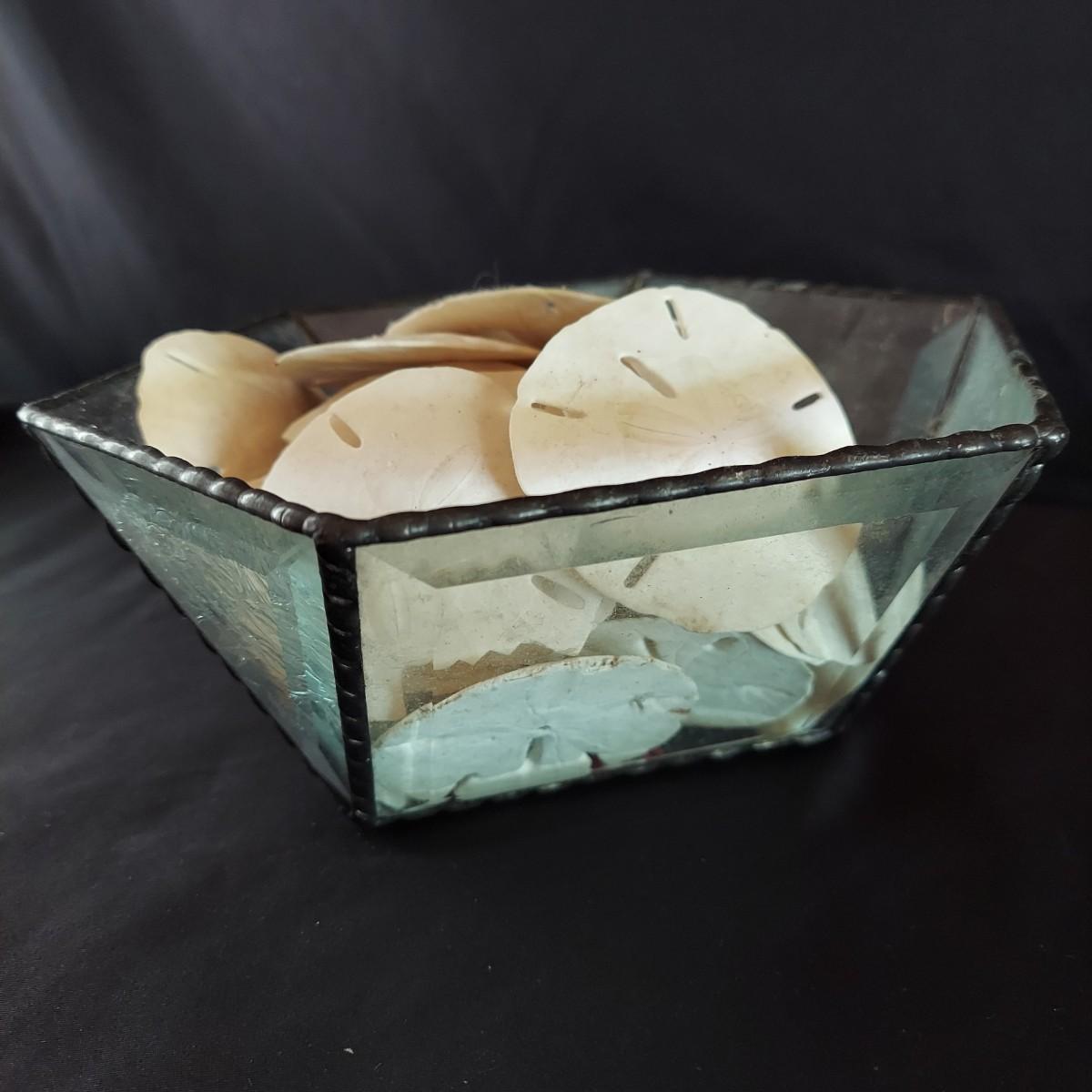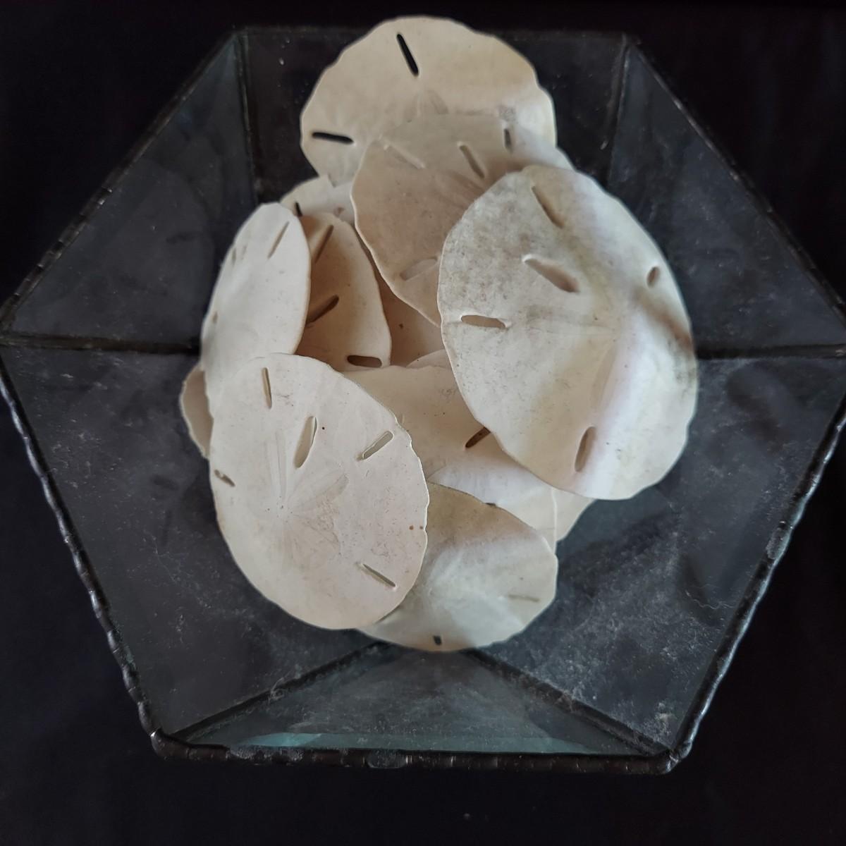This lot features two skeletons of coral. One appears to be red pipe organ coral and the other spiny coral. The white coral is approximately 4" tall and 7" wide. Two large quartz druzys. One appears to be clear quartz at approximately 5" long and the other a purple amethyst at approximately 7" long. One glass bowl full of sand dollars. One quart bag of 2-3" black polished river rock and assorted small loose stones. Shipping available.