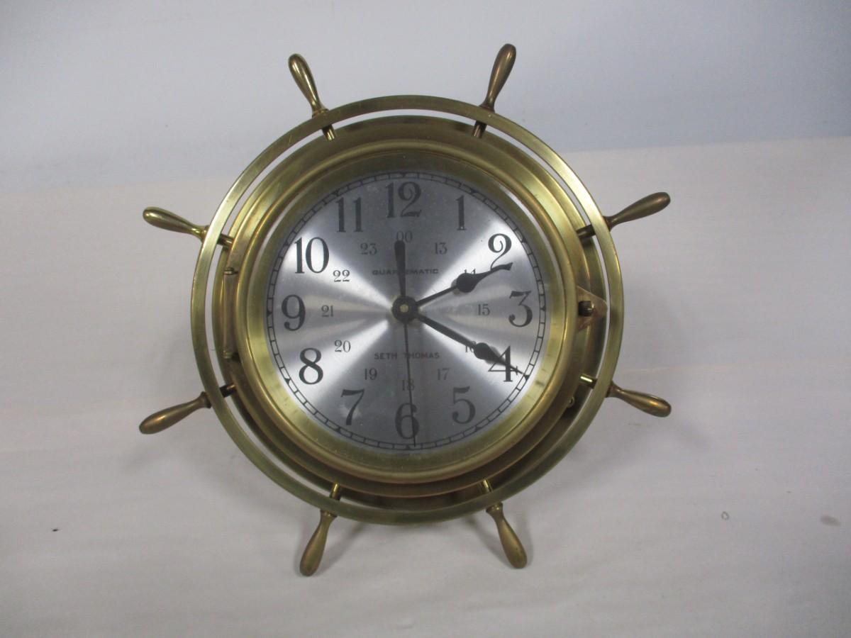 Quartzmatic Seth Thomas Nautical Ships Wheel Clock