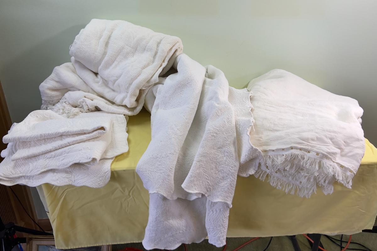 Queen 3 Bed Spreads and 2 Shams WHITE Lot