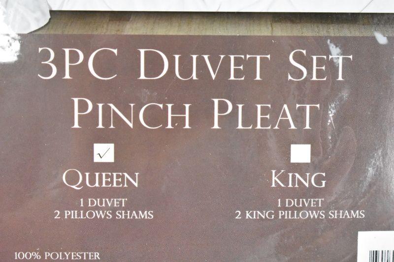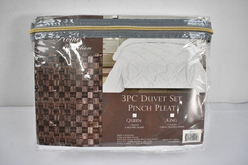 Queen 3 Piece Duvet Cover Set, Includes Duvet Cover & 2 Pillow Shams, Pinch Pleat, White - New