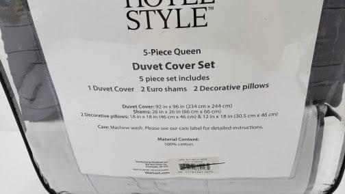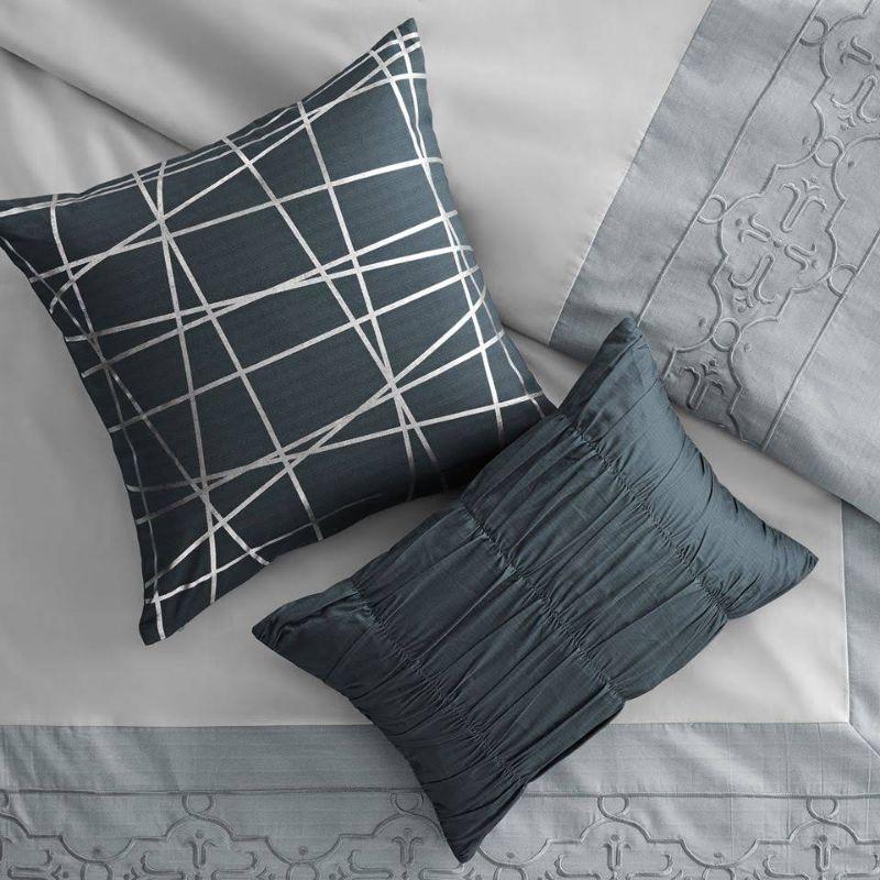 Queen 5-PC Naples Embroidered Duvet Set, Dark Grey & Silver, 2 Euro Shams/2 Throw Pillows/Duvet - New