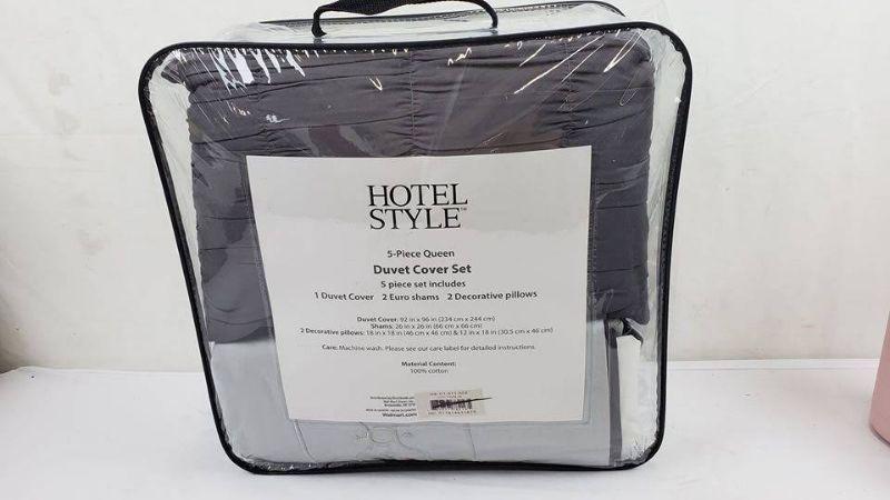 Queen 5-PC Naples Embroidered Duvet Set, Dark Grey & Silver - New