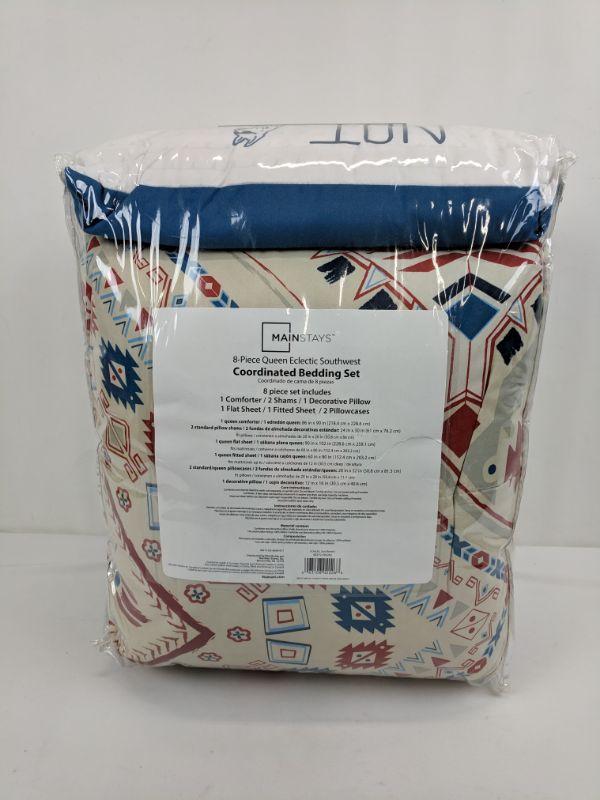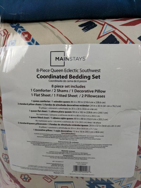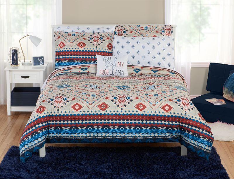Queen 8PC Eclectic Southwest Bedding Set, Llama Accent Pillow - New