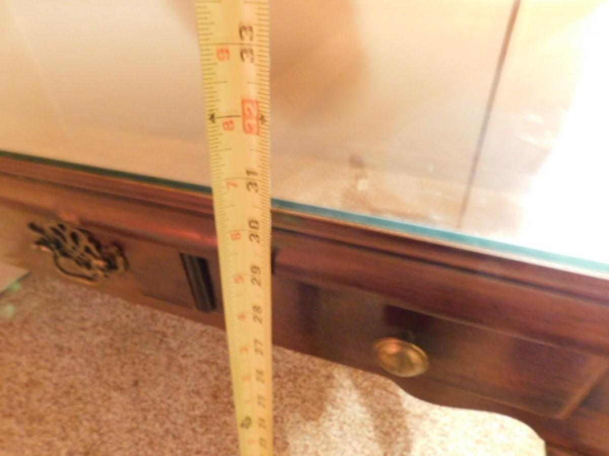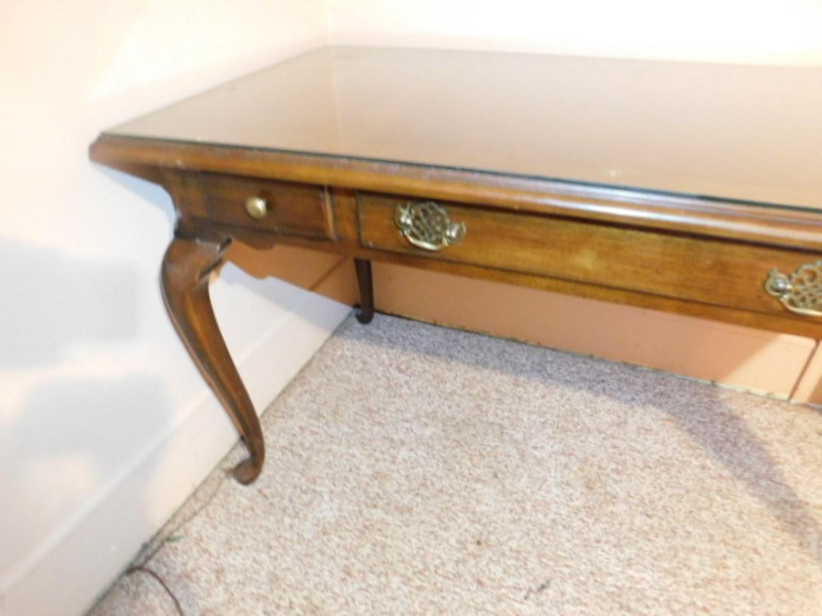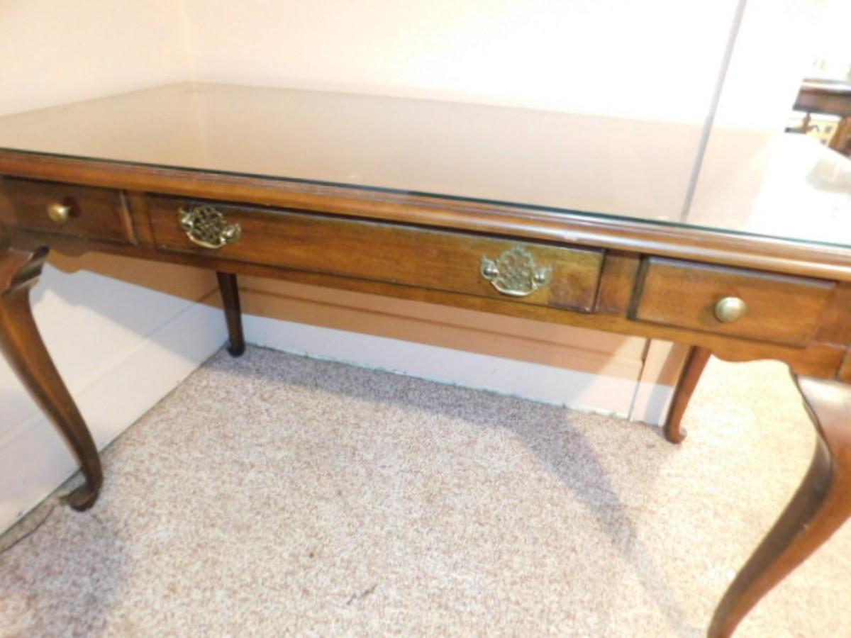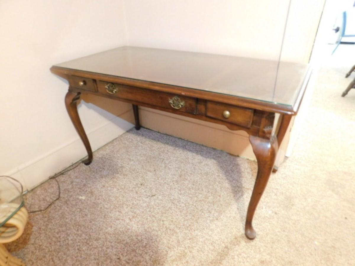 Queen Ann Style Writing Desk with Inlay Top and Glass Protector on Surface expect some wear and scratches to the surface as shown