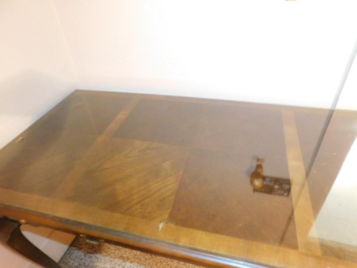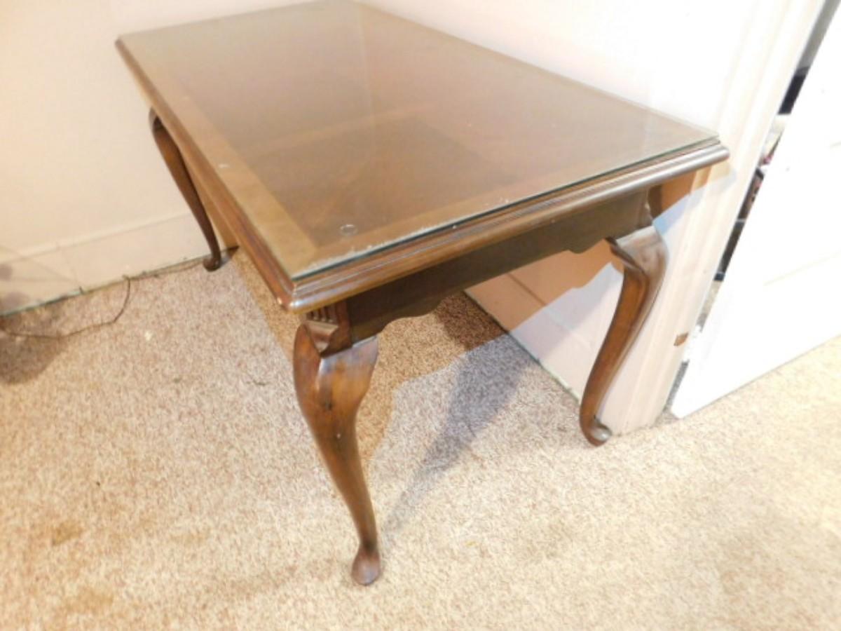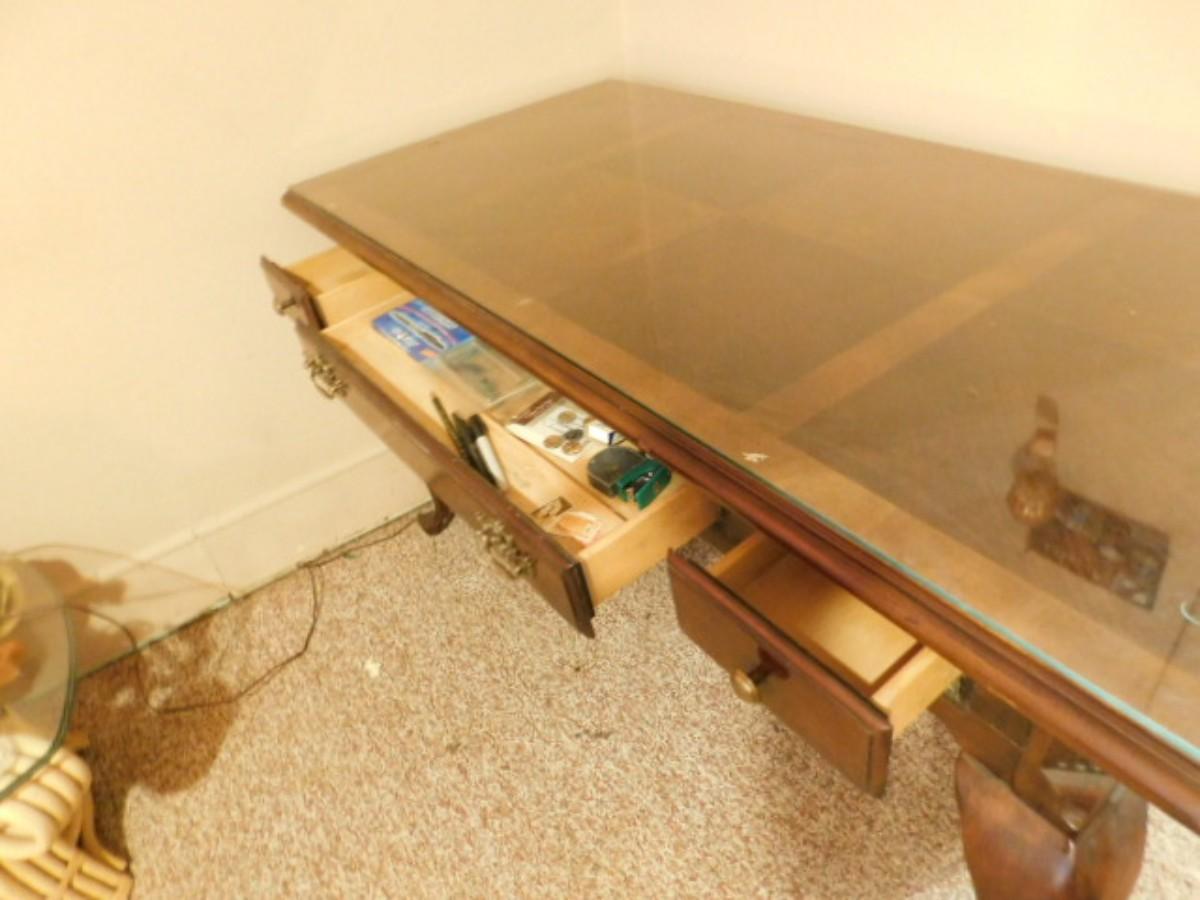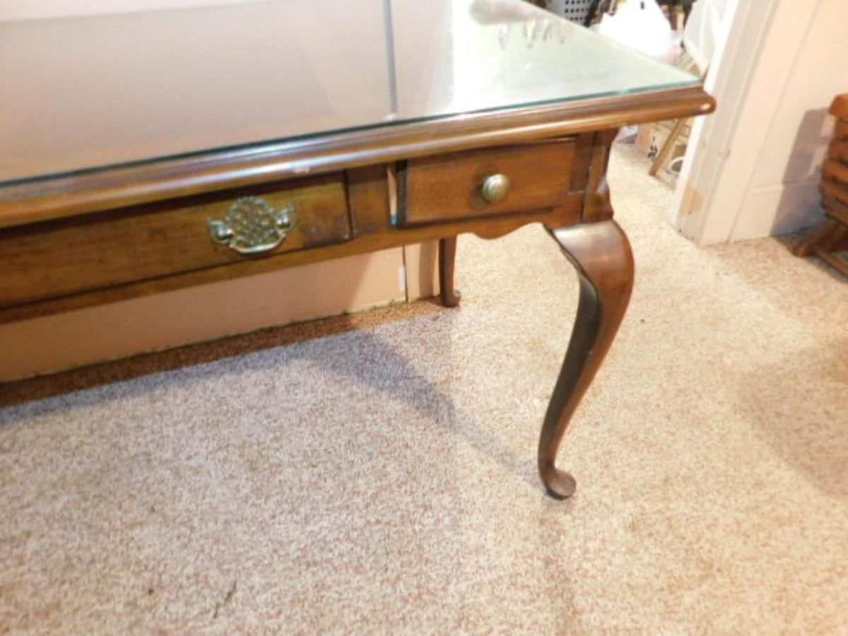 Queen Ann Style Writing Desk with Inlay Top and Glass Protector on Surface expect some wear and scratches to the surface as shown
