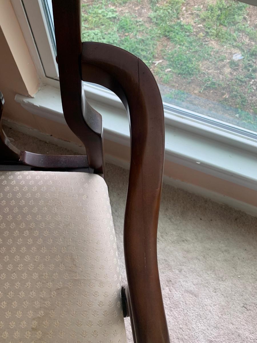 Queen Anne arm chair, cabriole legs, 42"H 23"W 19"seat H