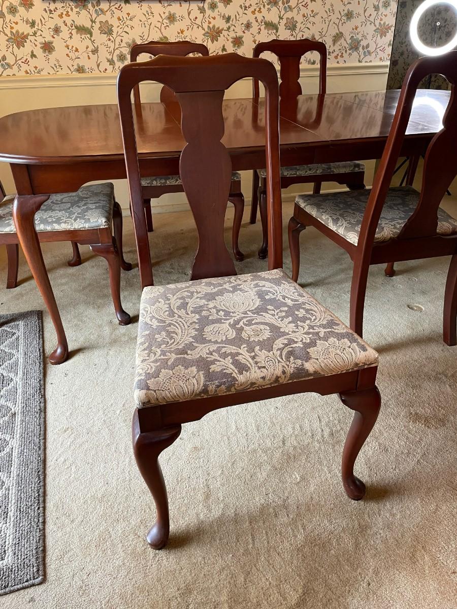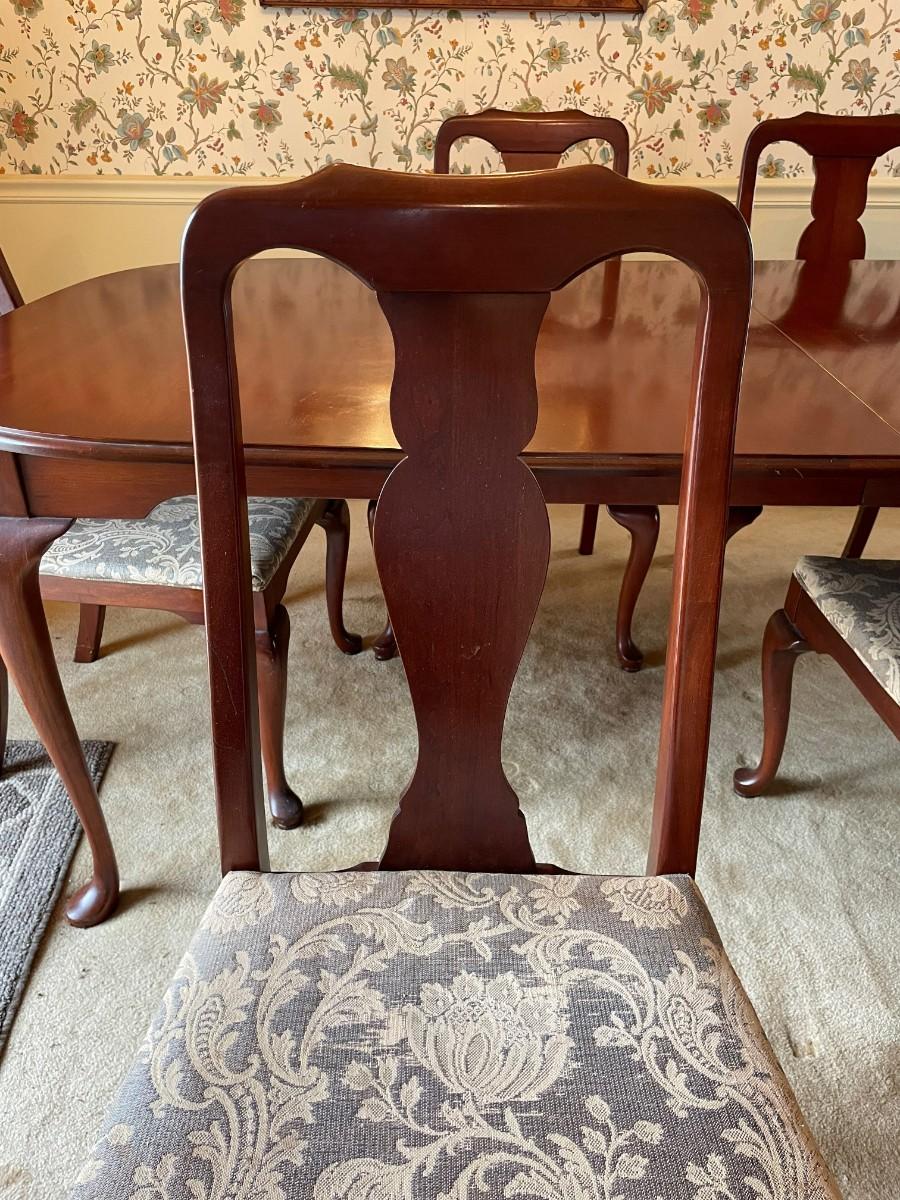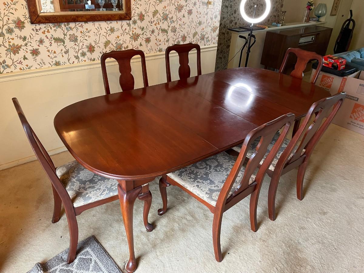 Queen Anne Cherry Dining Room Table with 6 chairs.
