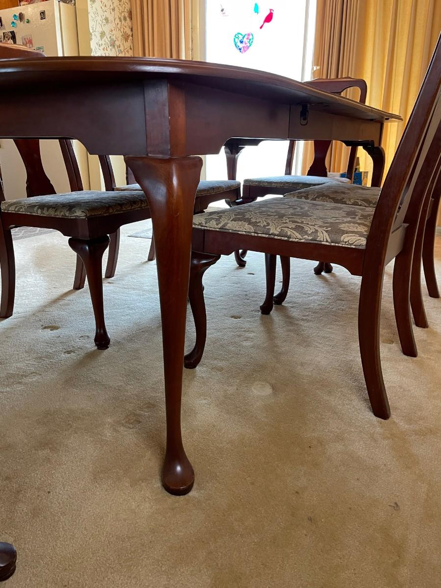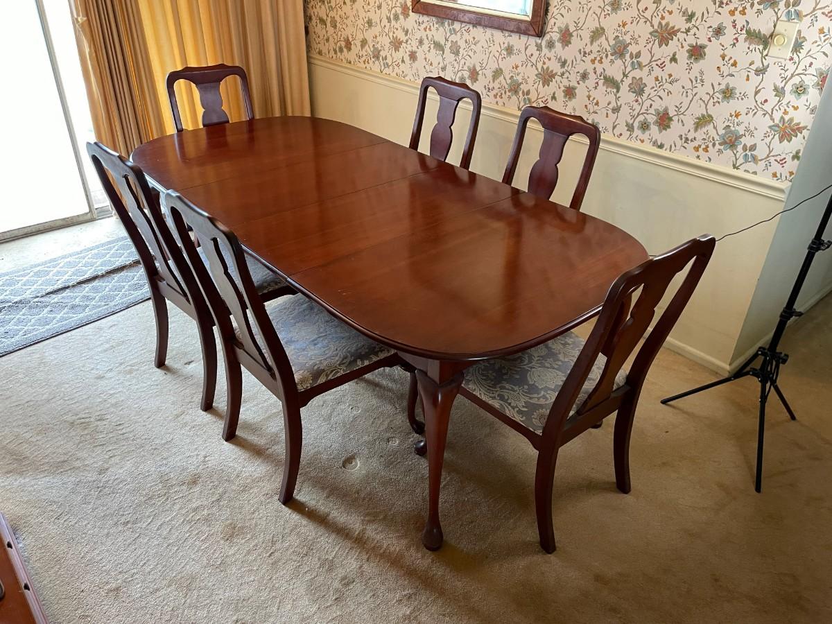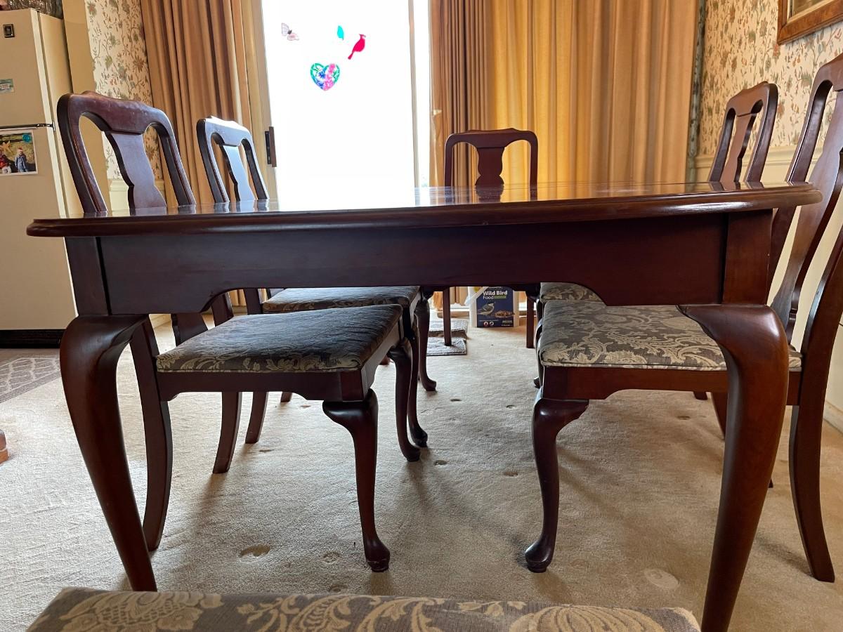Queen Anne Cherry Dining Room Table with 6 chairs.