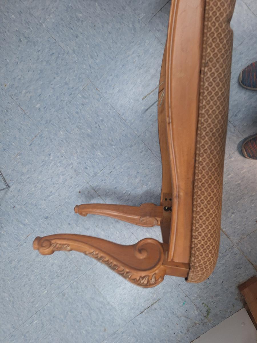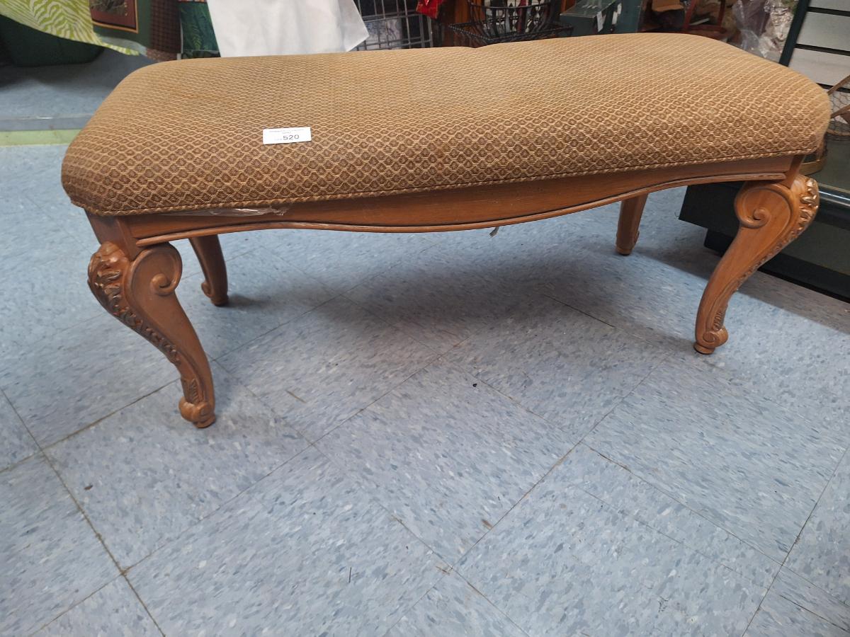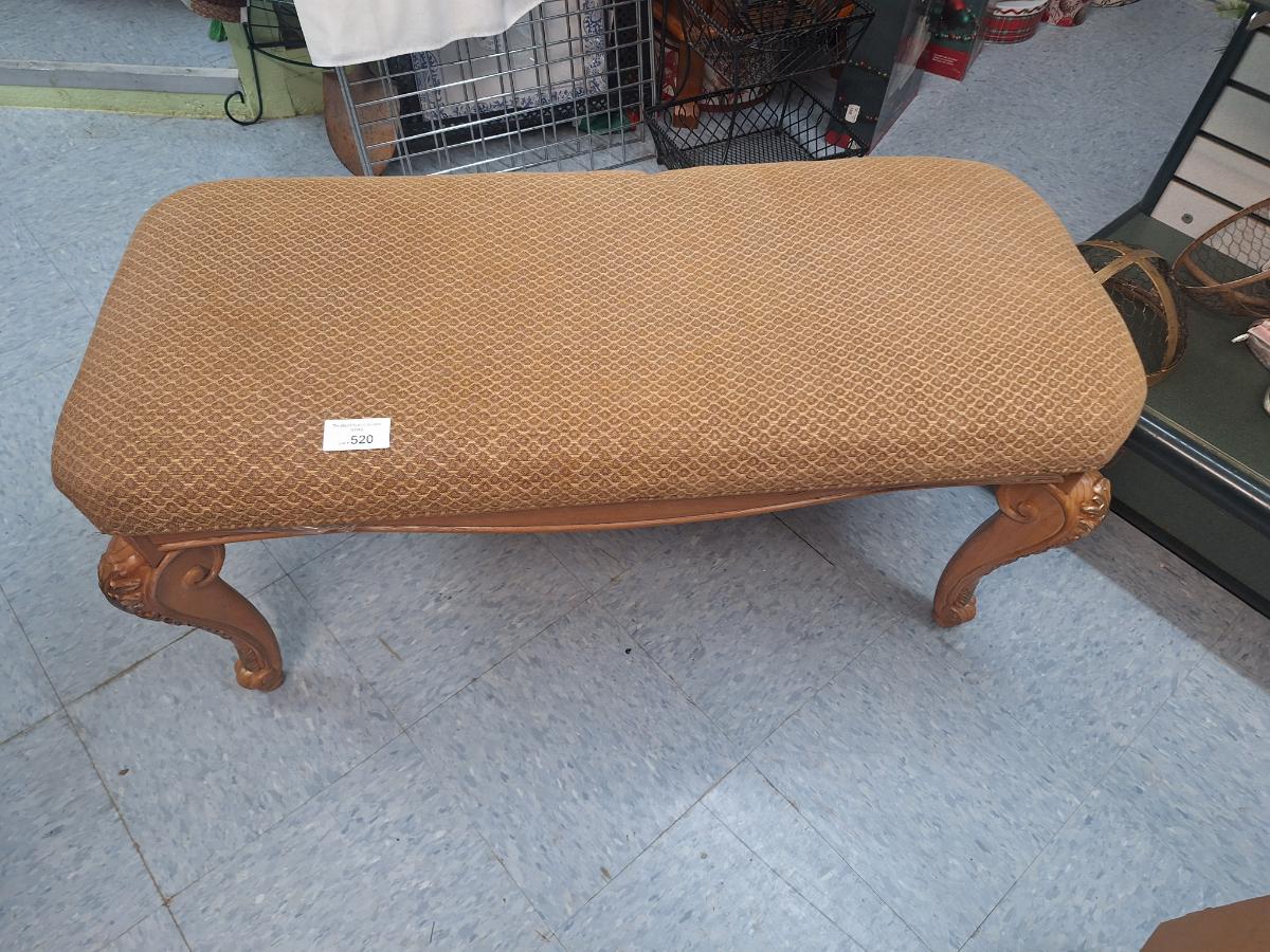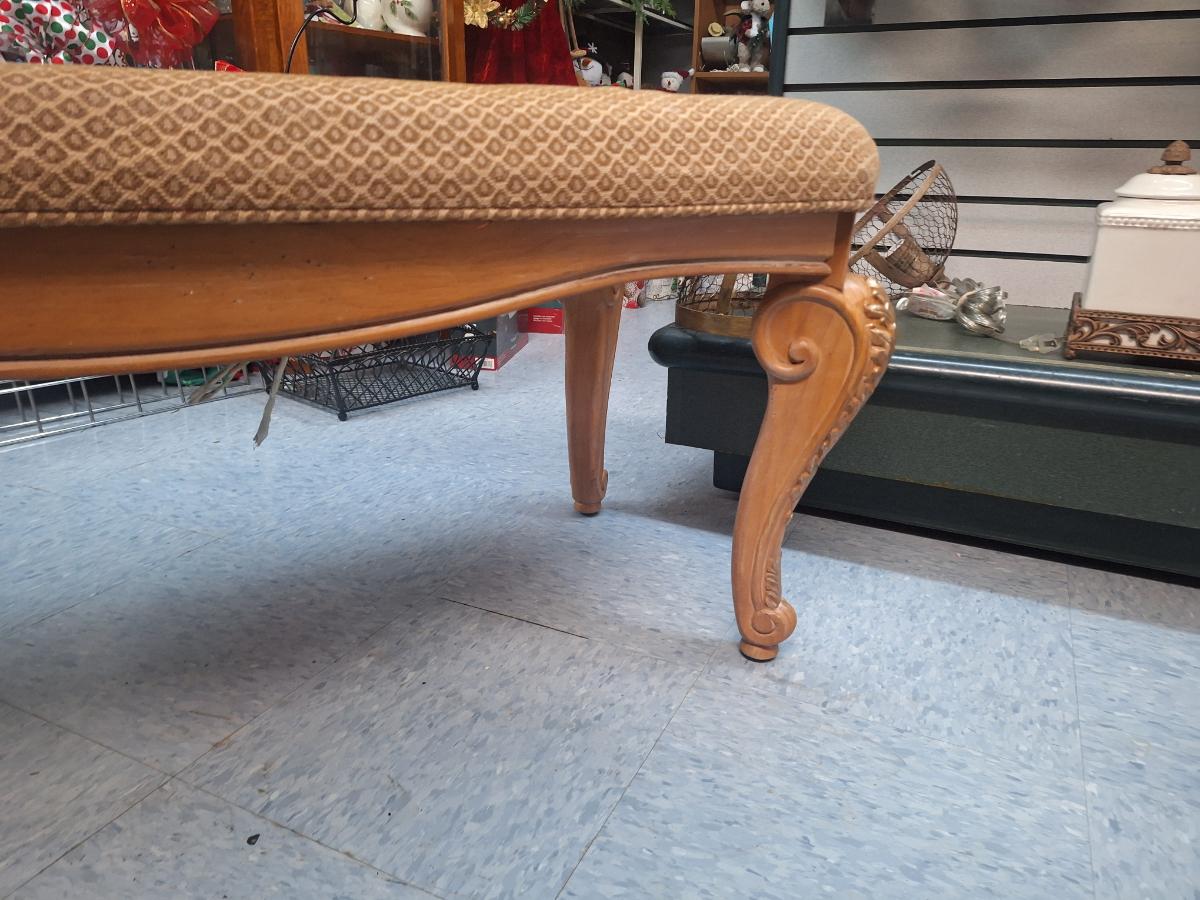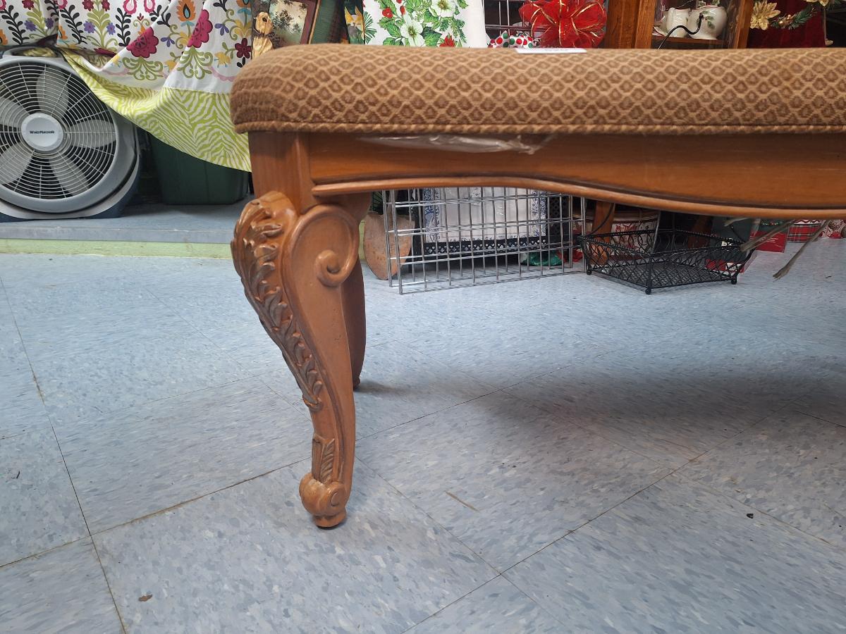 Queen Anne style carved walnut upholstered bench