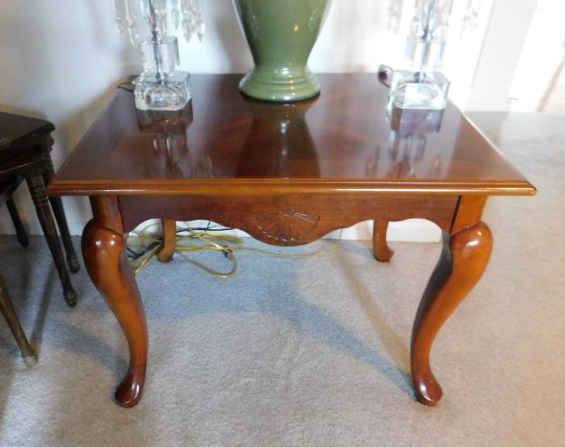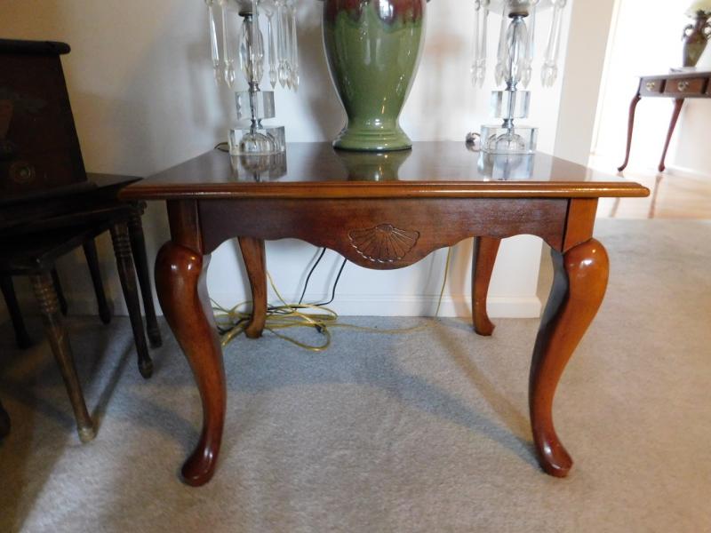 Queen Anne Style Lamp Table with Inlay (1 of 2) in good condition. Each has some minor wear or scratches. Nice finish.