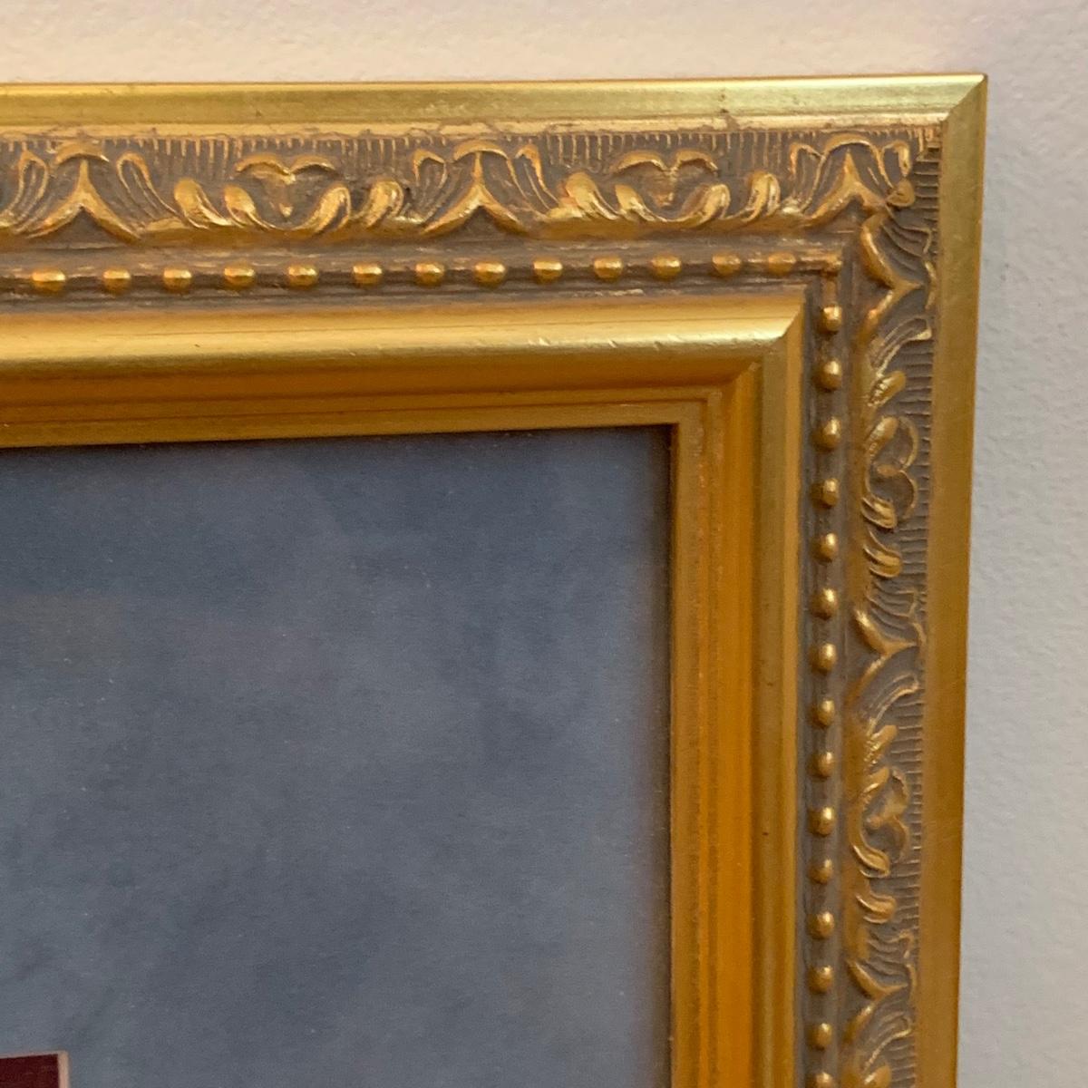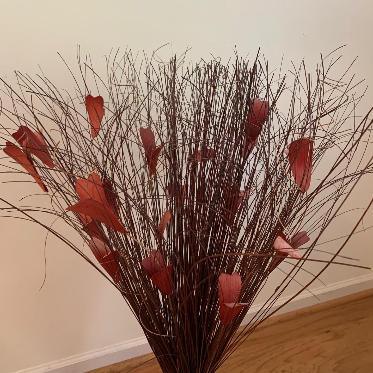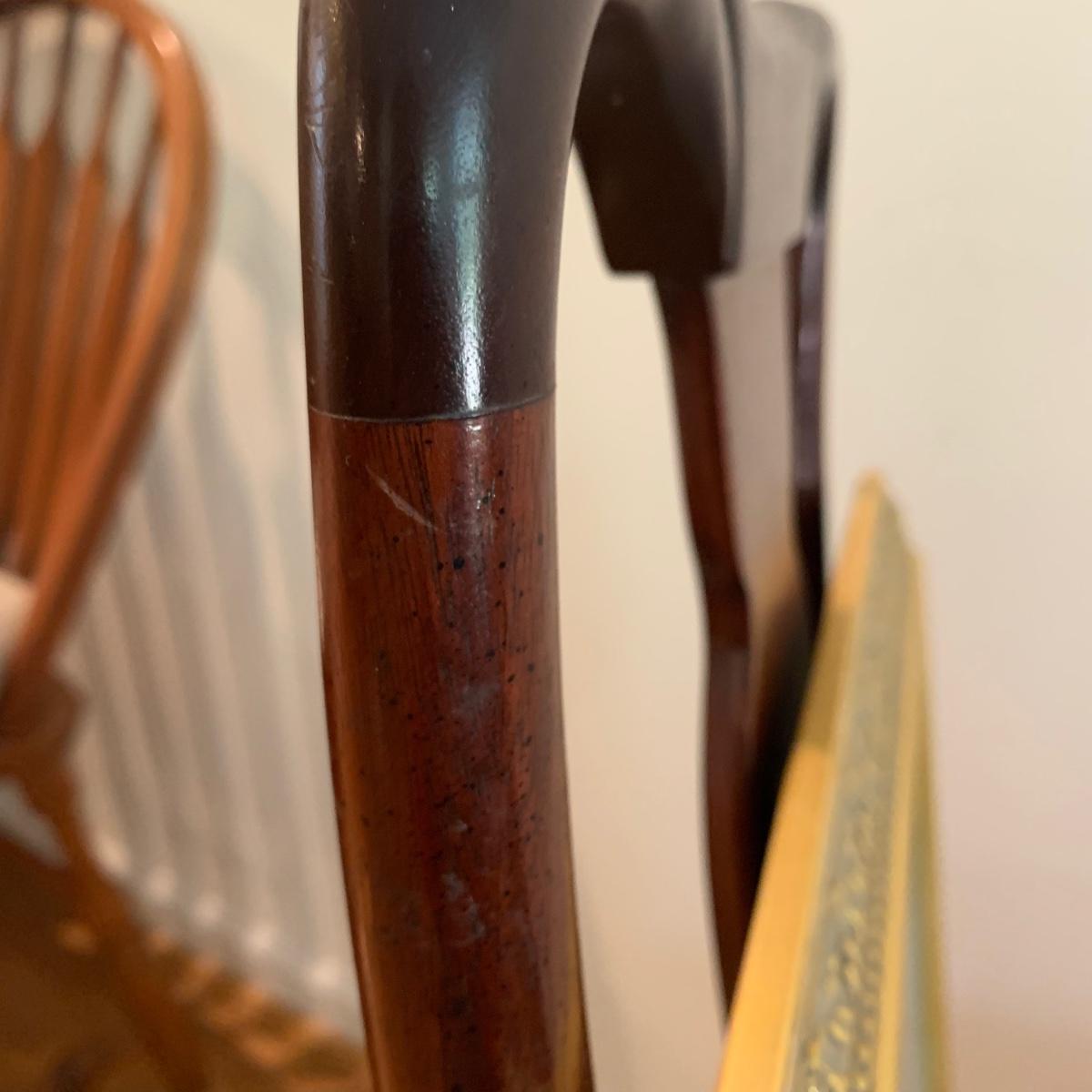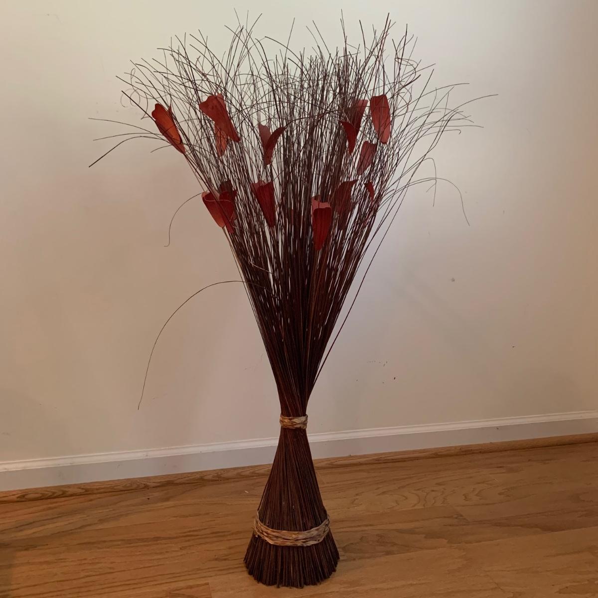 This lovely Queen Anne style splat back chair is made of a dark reddish-brown lustrous wood. It has a soft padded cushion that is a light creamy golden color. The seat height is 18”. The seat is 17” wide and 15” deep. The top of the back is 35” tall. It is in used but good condition. There is a tiny bit of hair on the cushion from the previous owner’s pet, as well as a few very small nicks in the wood. The framed print appears to feature the Biltmore Estate. It is double matted and has an ornate frame. The frame appears to be wood painted gold. The frame measures 13.75” x 12.5” and has a wire on the back for hanging. There is also a piece of decor made of natural reed-like material. It is 36” tall. Local pickup only.