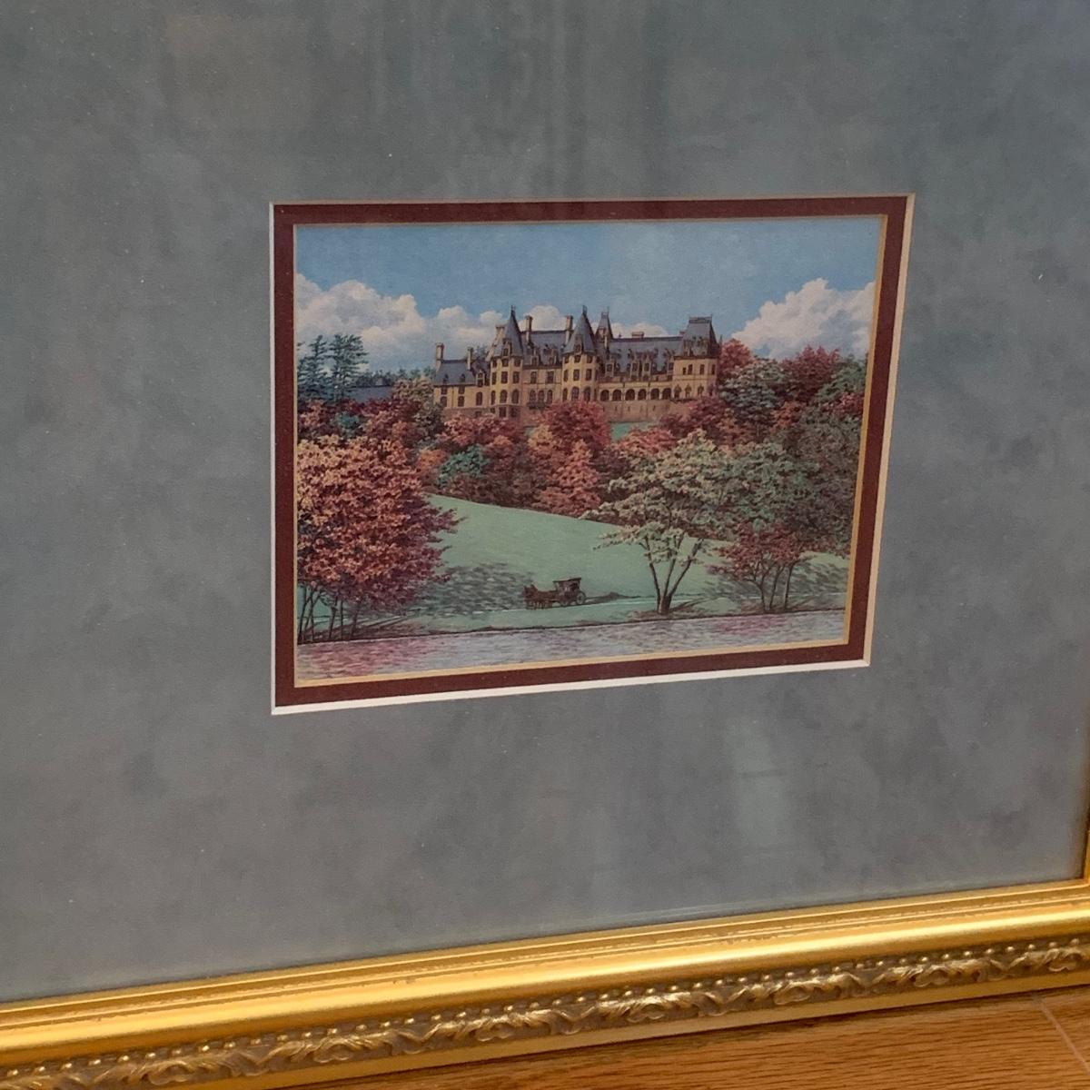 Queen Anne Style Splat Back Chair w/ Framed Biltmore Print & Natural Decor (LR-HS)