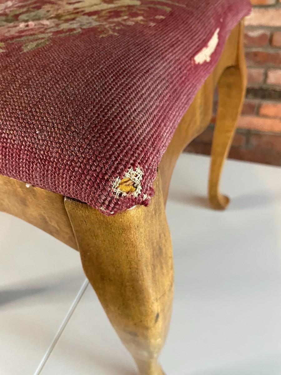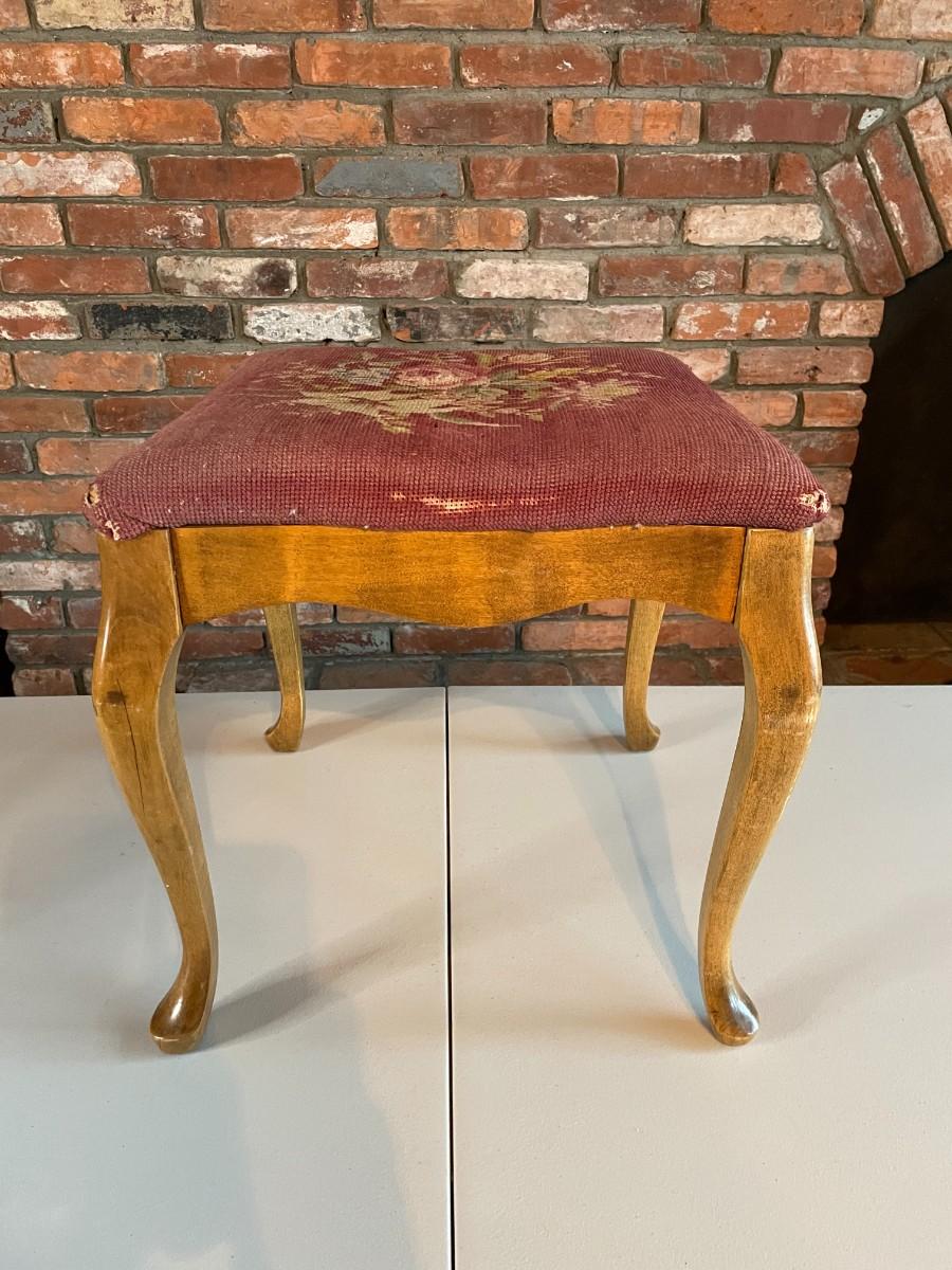 Queen Anne Style Wooden Foot Stool with Needlepoint Upholstery