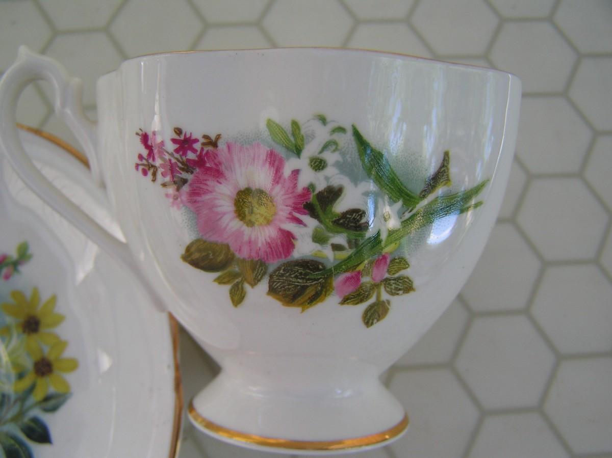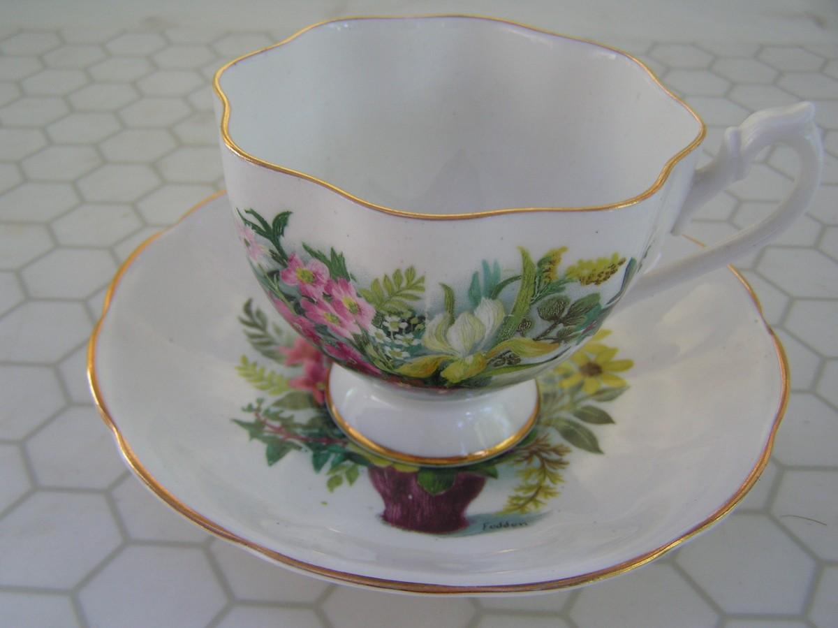 Queen Anne teacup & saucer set. Porcelain bone china, England.