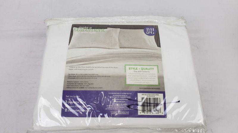 Queen Artic White Sheet Set, 300 Thread Count, BH&G - New