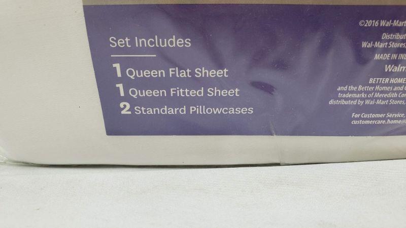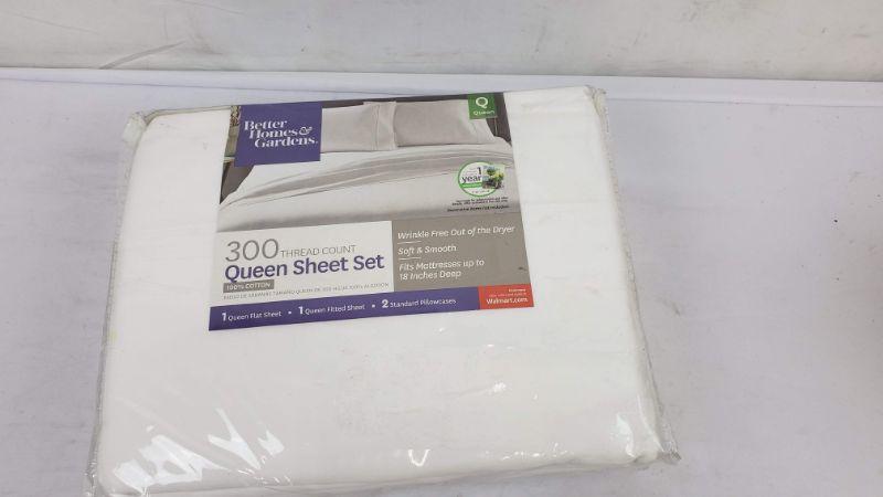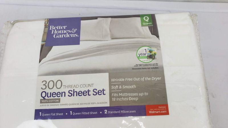 Queen Artic White Sheet Set, 300 Thread Count, 1 Flat/1 Fitted/2 Standard Pillowcases, Better Homes & Gardens - New