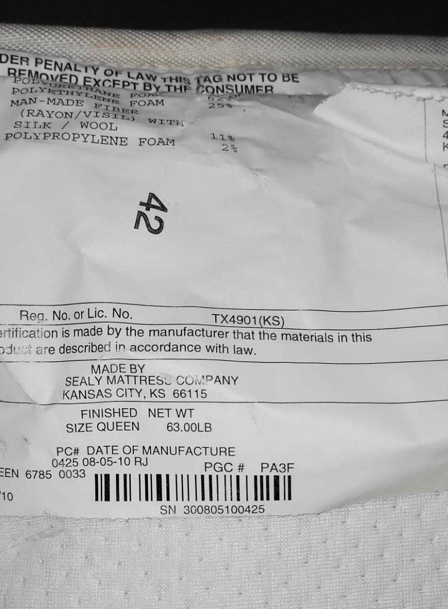 Mattresses are also in great shape having one small tear of less than 1" at the foot end of the mattress. The top mattress is not a double sided mattress.