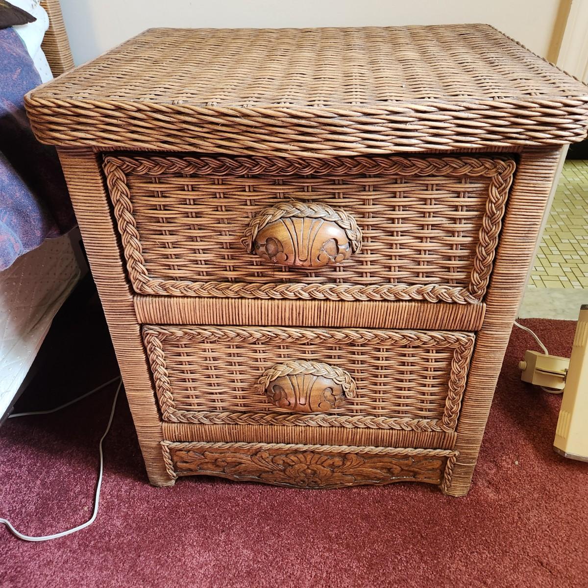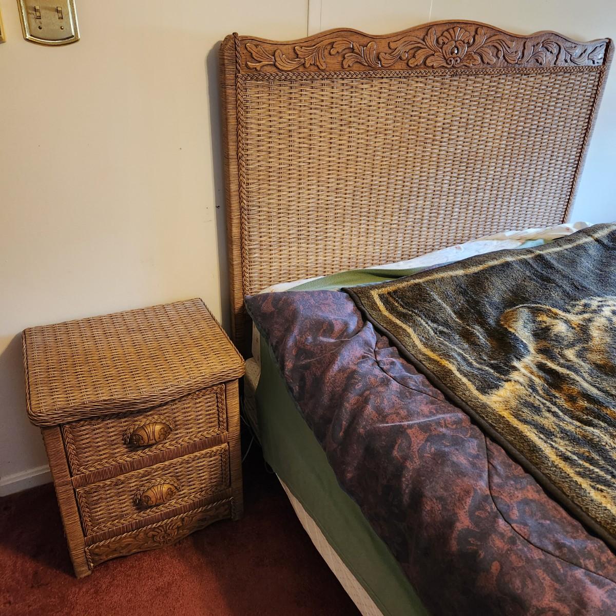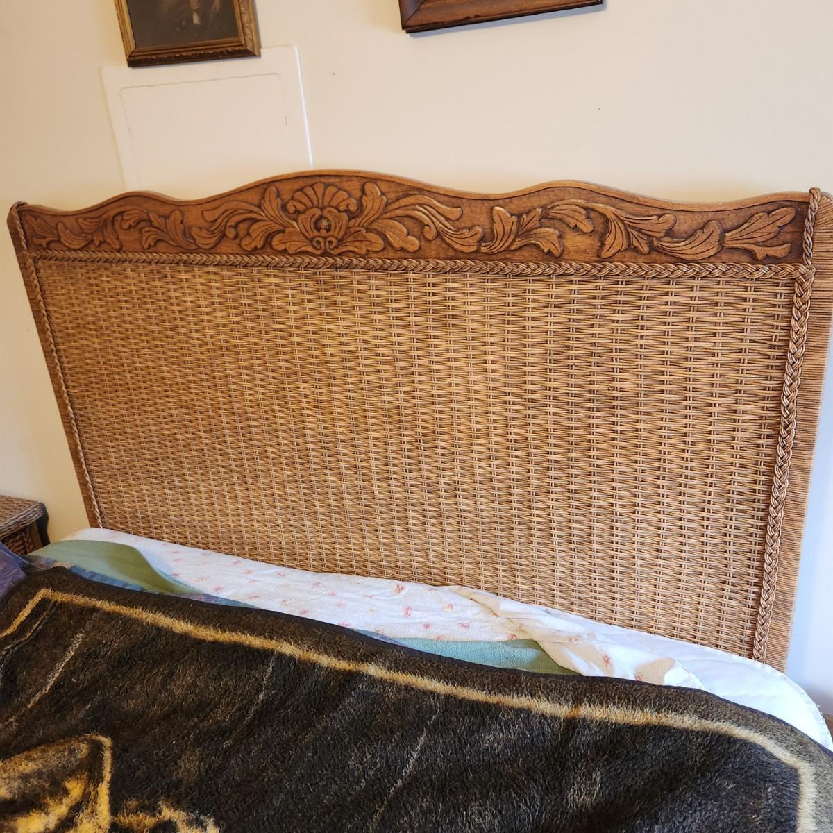 Queen Bed Headboard and 2 Night Stand Tables Wicker Look Style