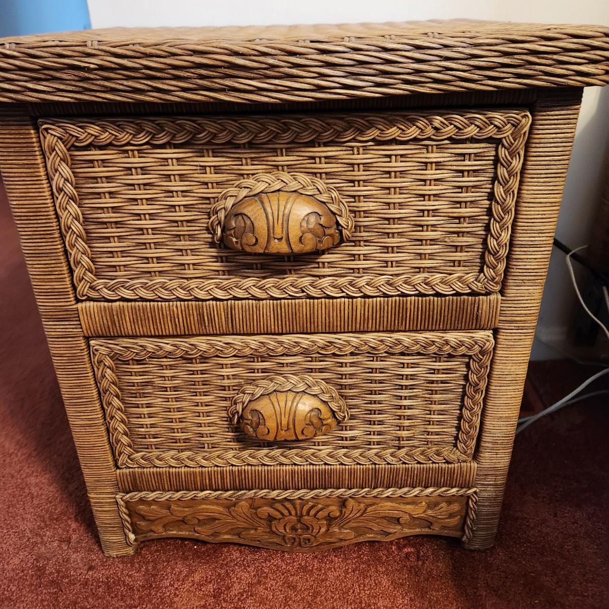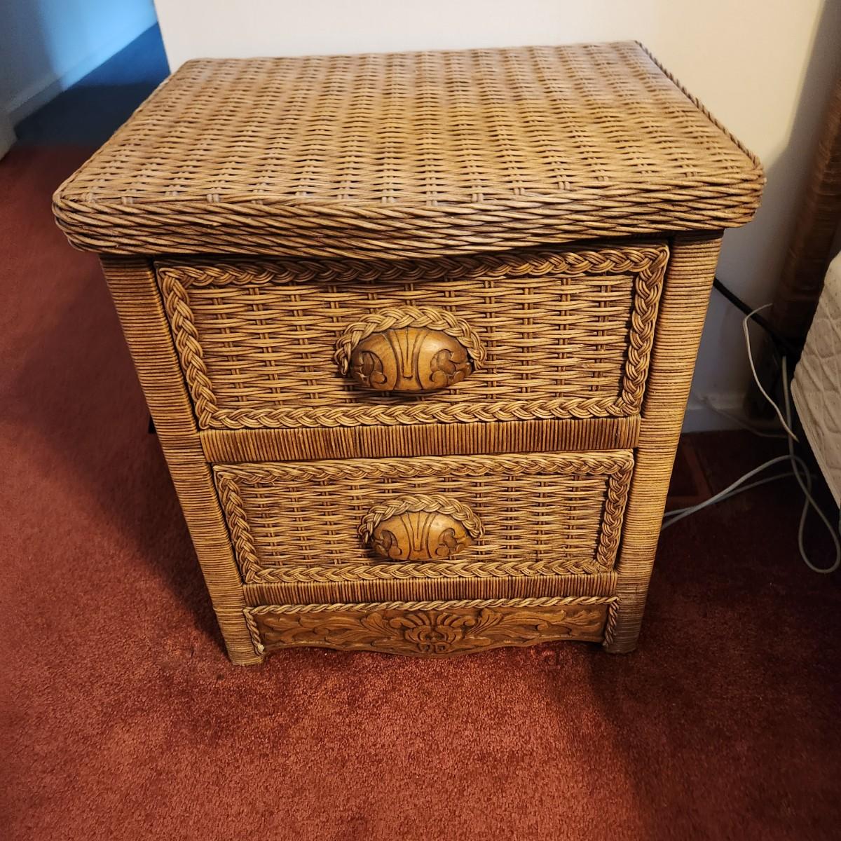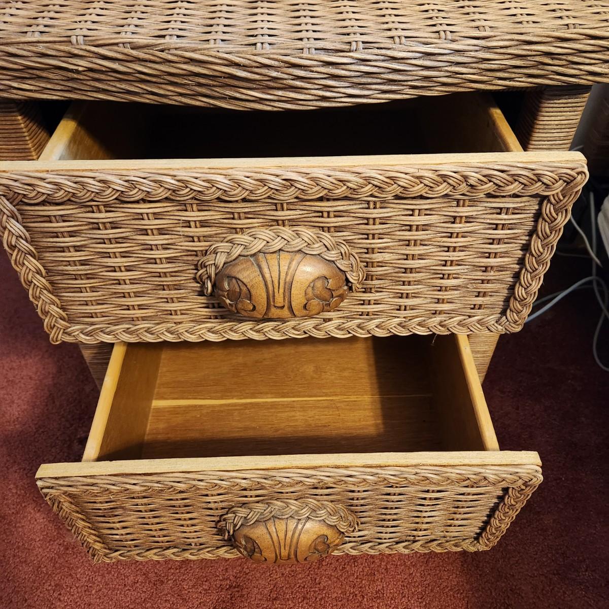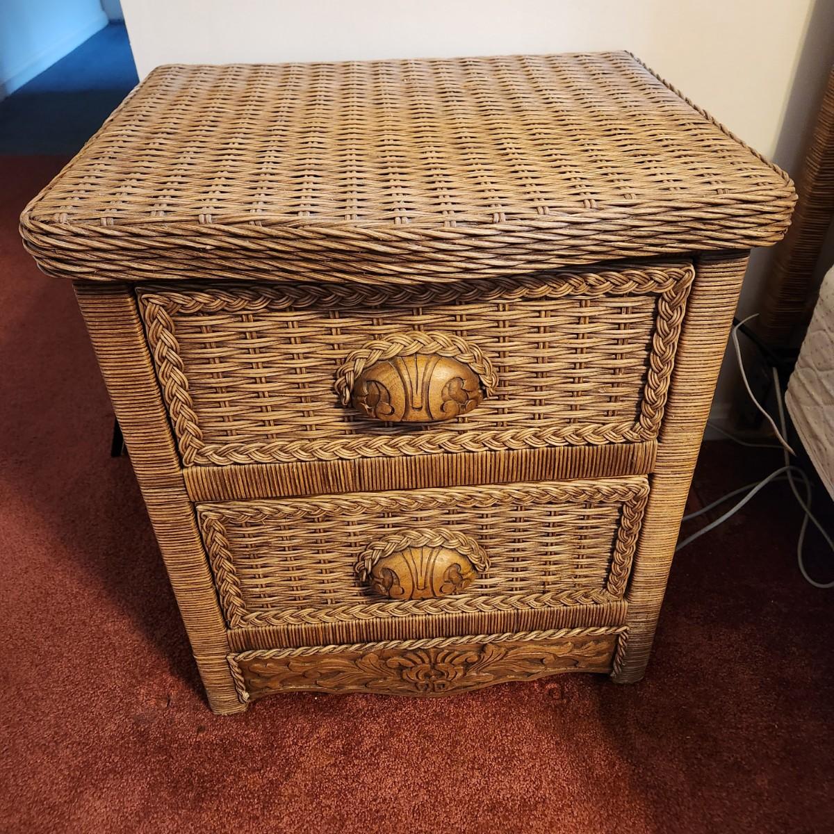 Queen Bed Headboard and 2 Night Stand Tables Wicker Look Style