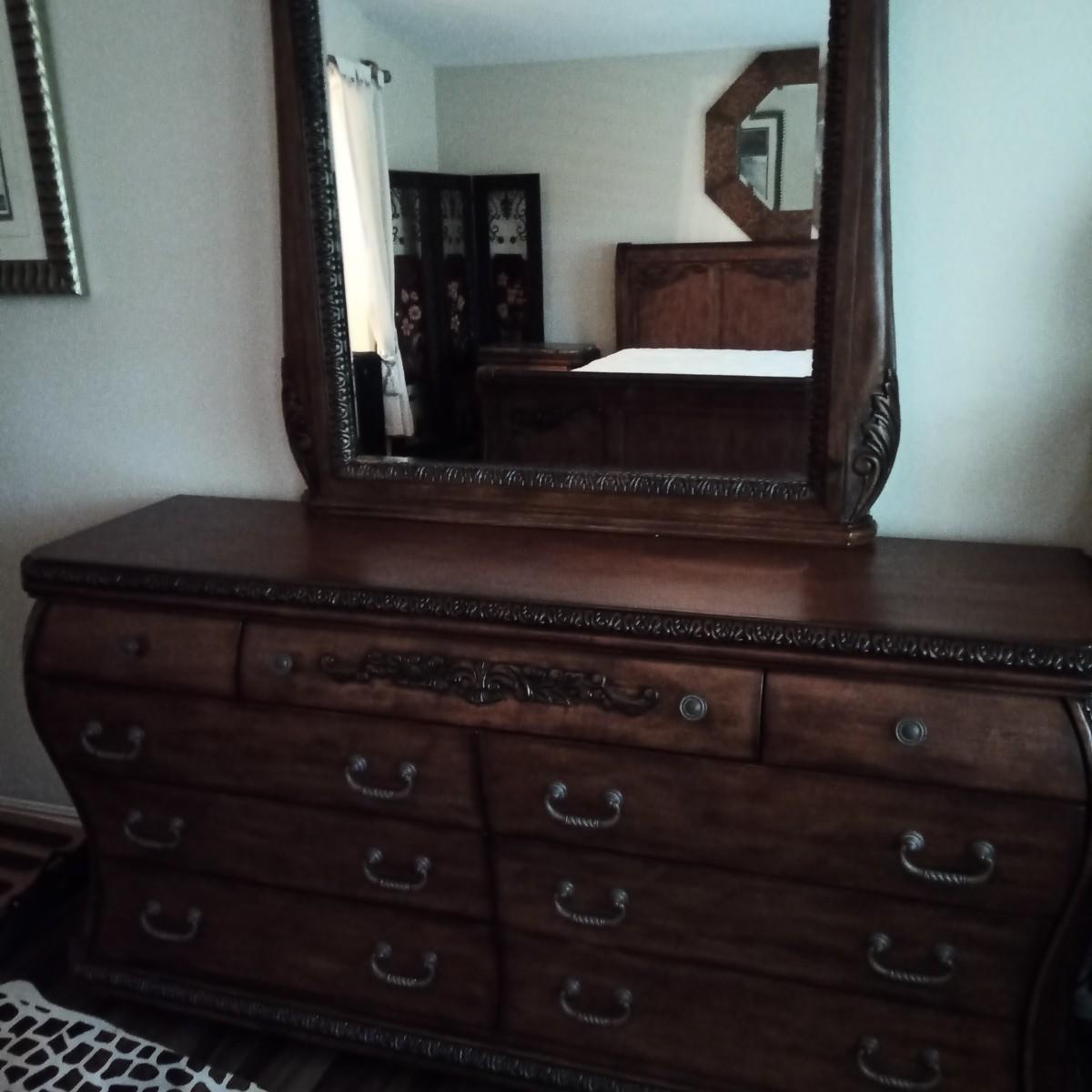 Bed, Headboard, Nightstands and Dresser
