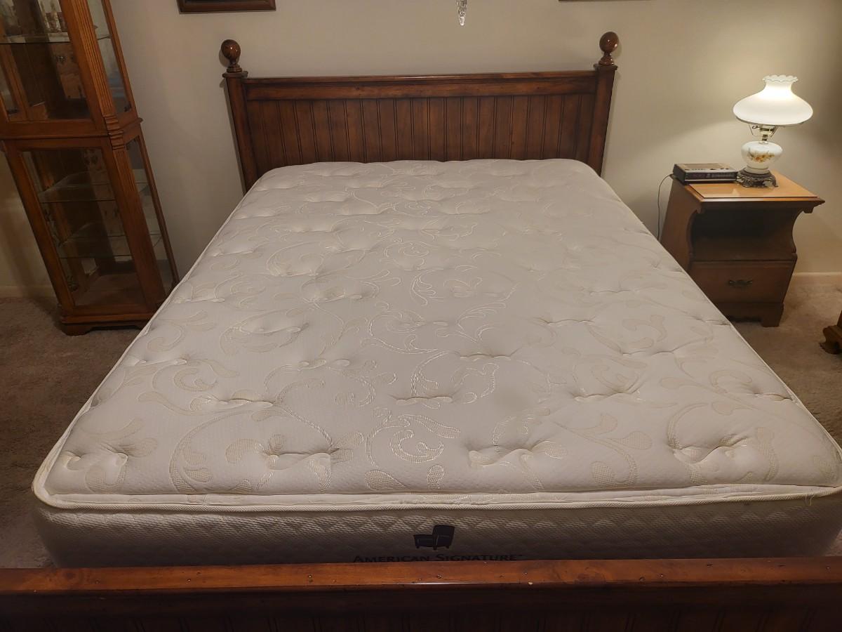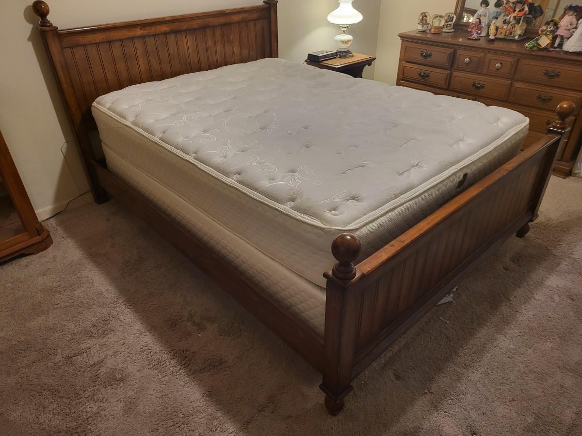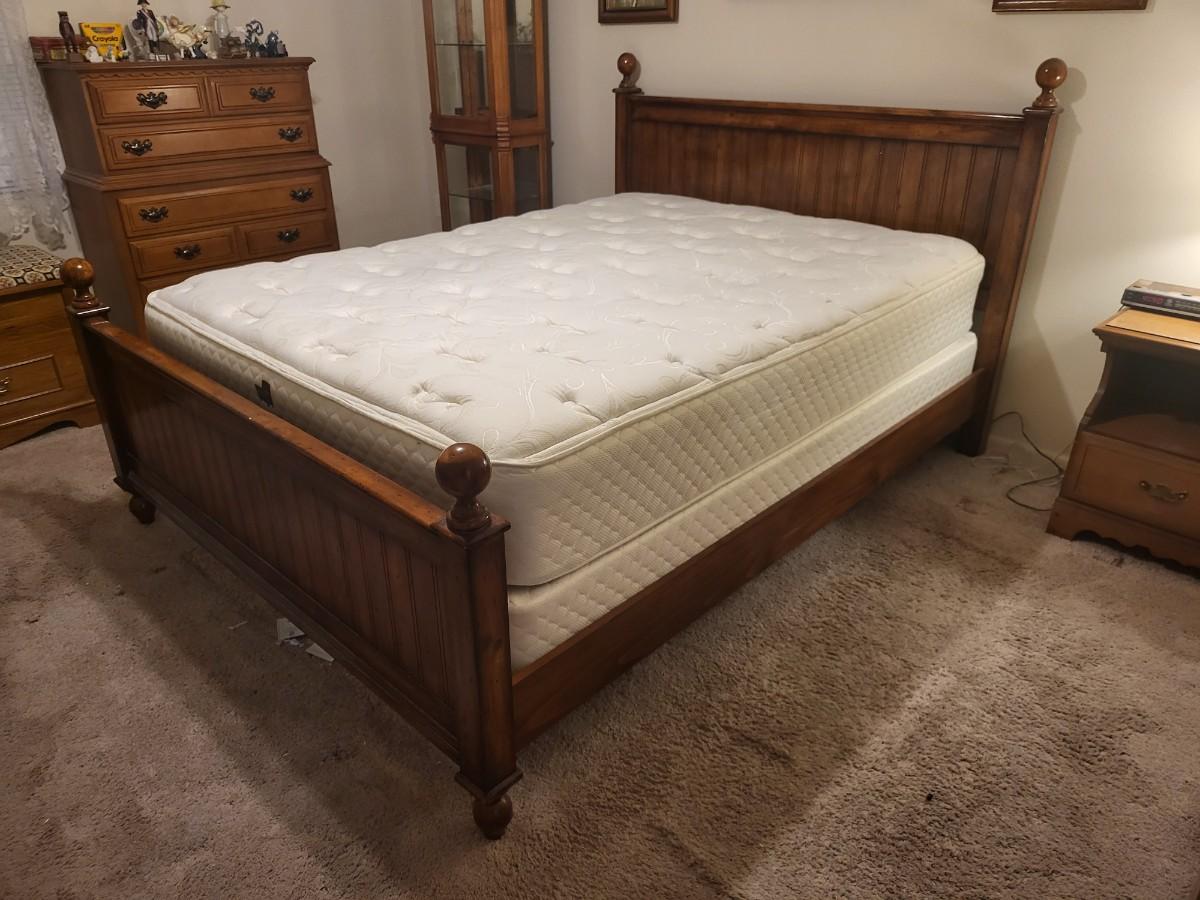 Pkg includes linen, both mattresses, head board, foot board, and Frame