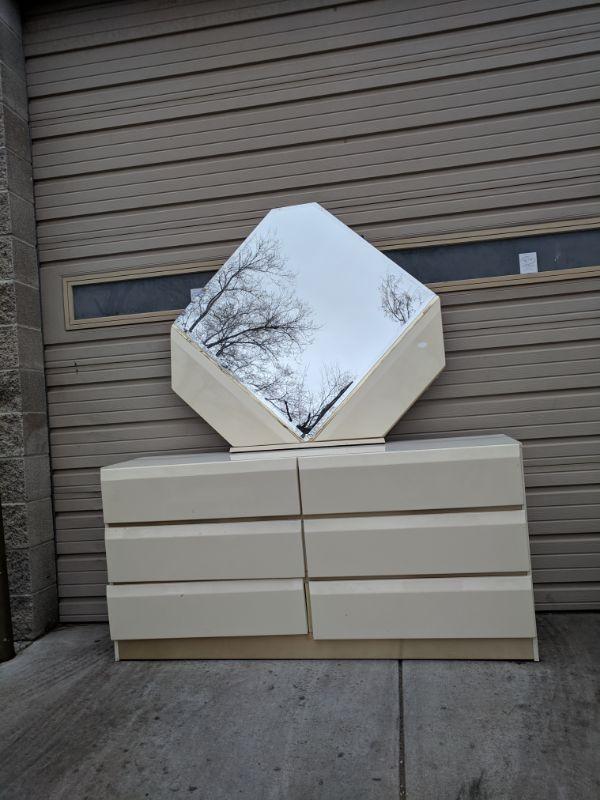 Queen Bedroom Set, 80s Modern Set, Dresser w/ Mirror/Nightstand/Headboard