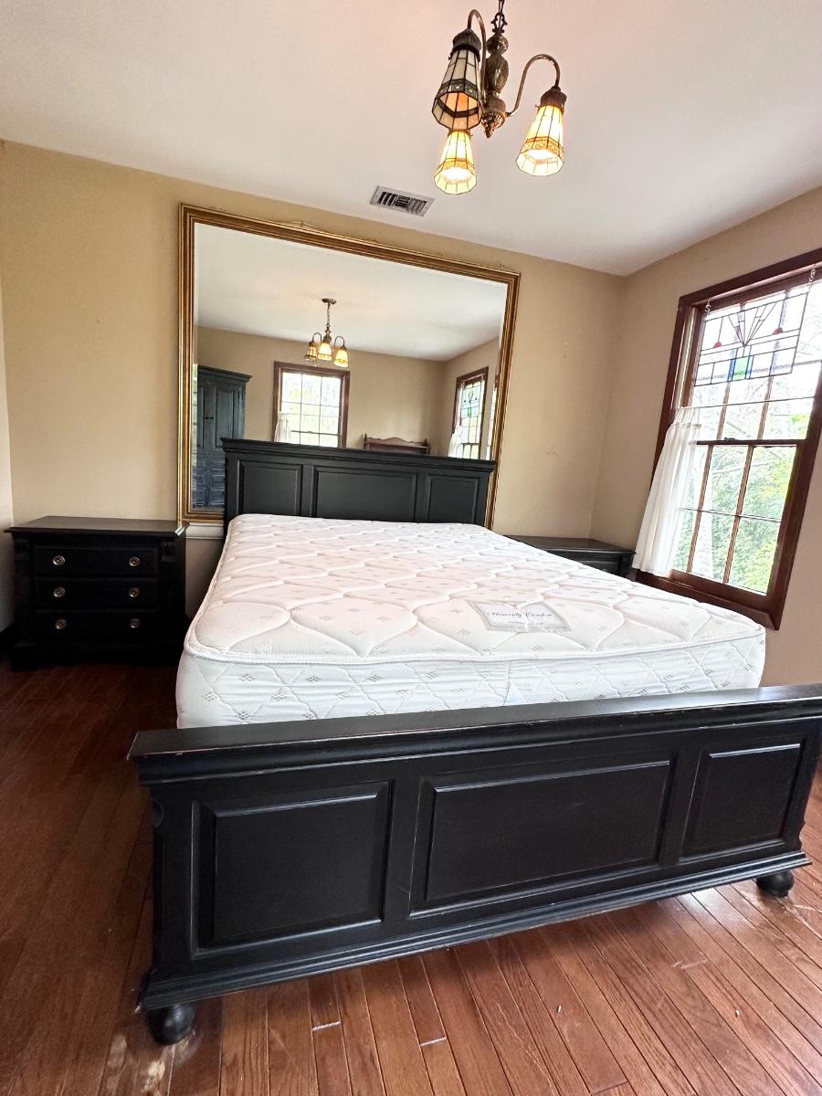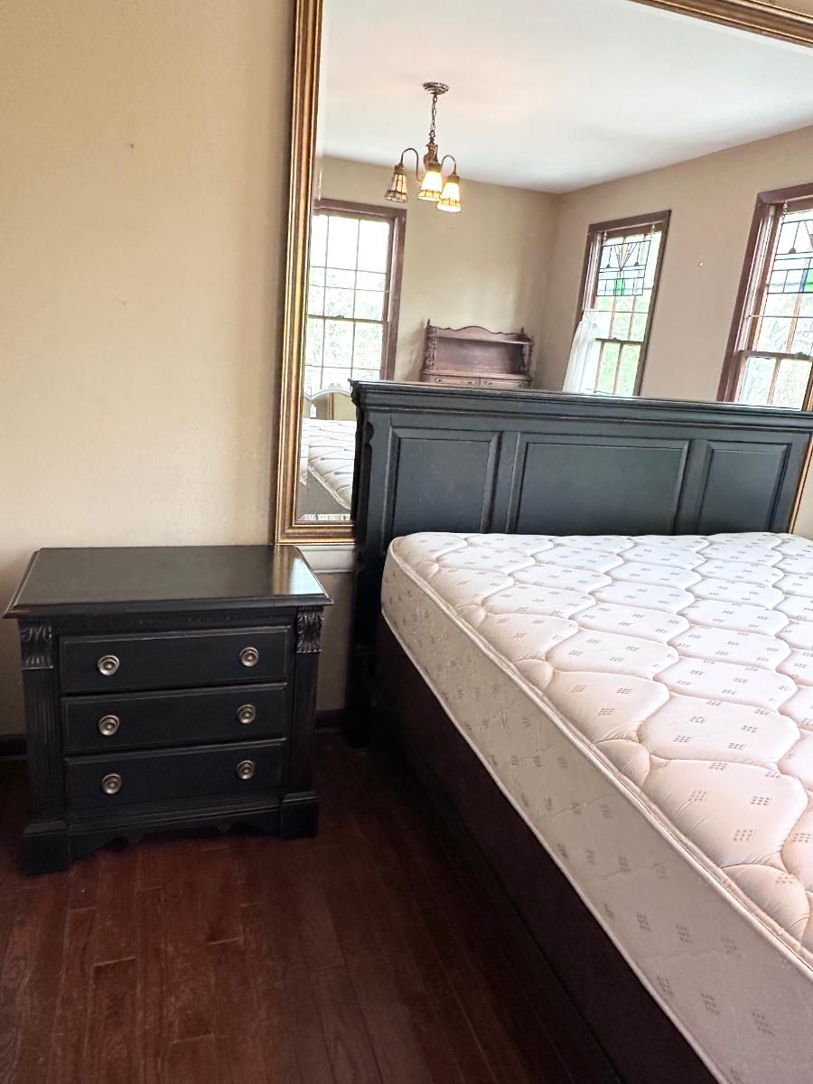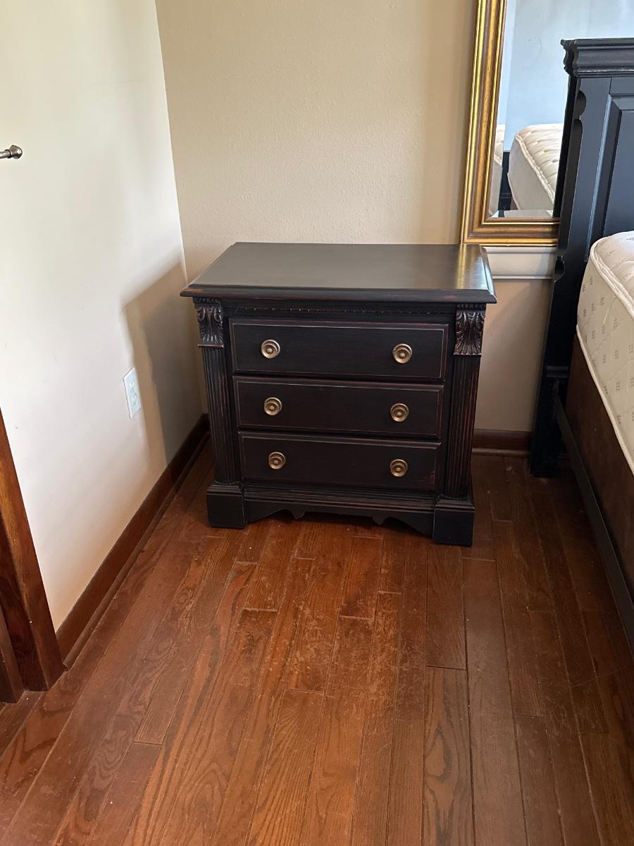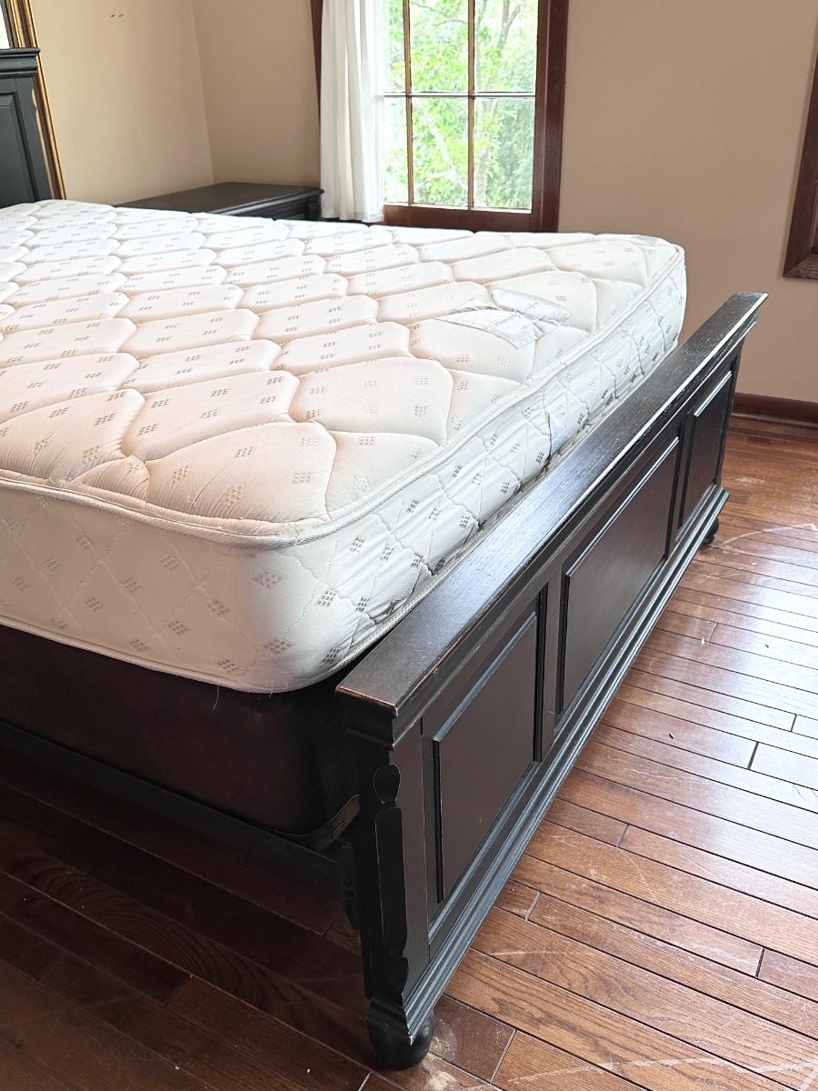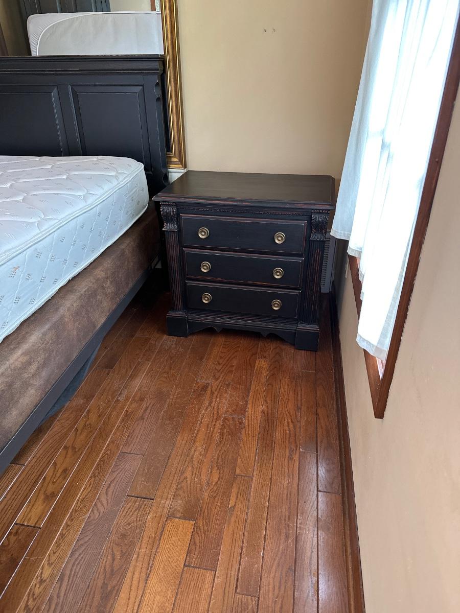 Queen Black Distressed Bed & 2 Night Stands ~ Includes Mattress & Box