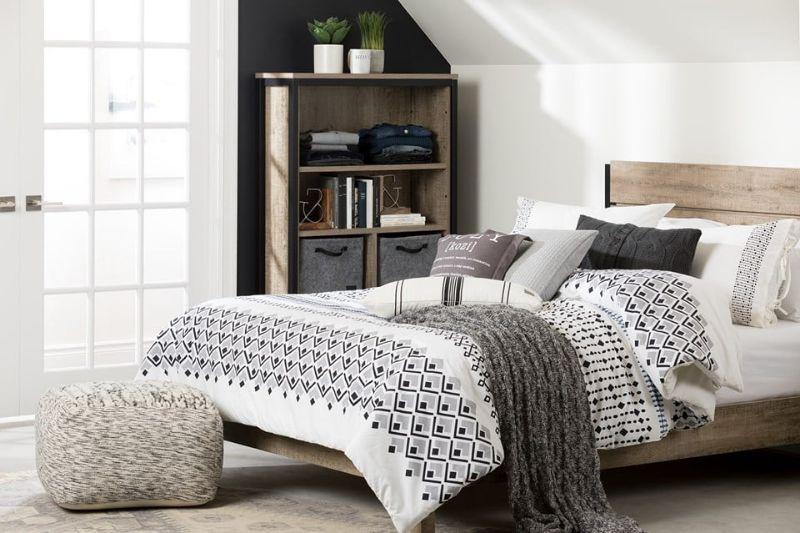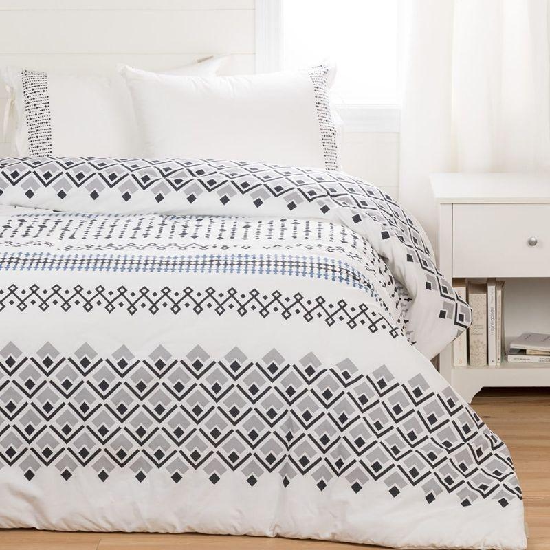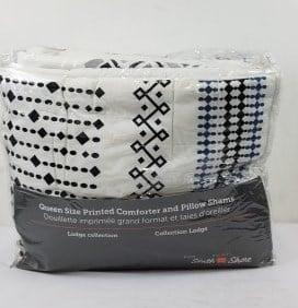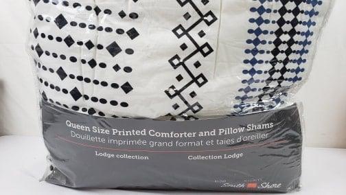 Queen, Black/White/Blue White Printed Comforter with Pillow Shams, Lodge Collection, South Shore, Open Pkg - New