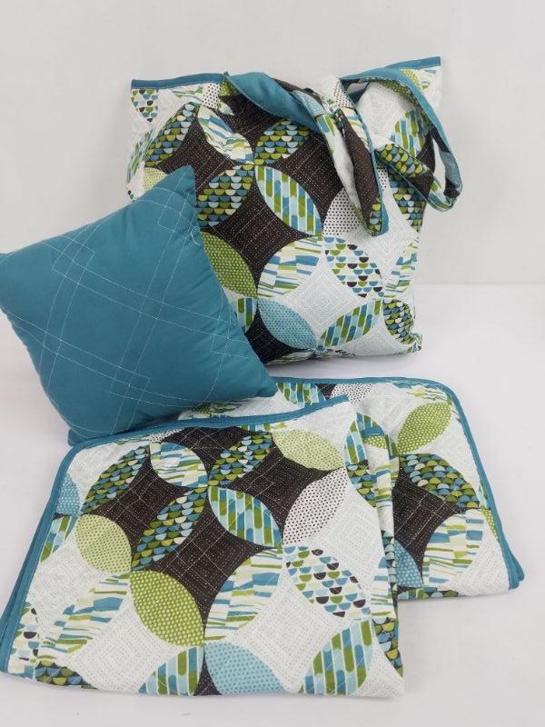 Queen Comforter with Matching Shams & 1 Small Pillow with Bag: Brown, Green, Turquoise