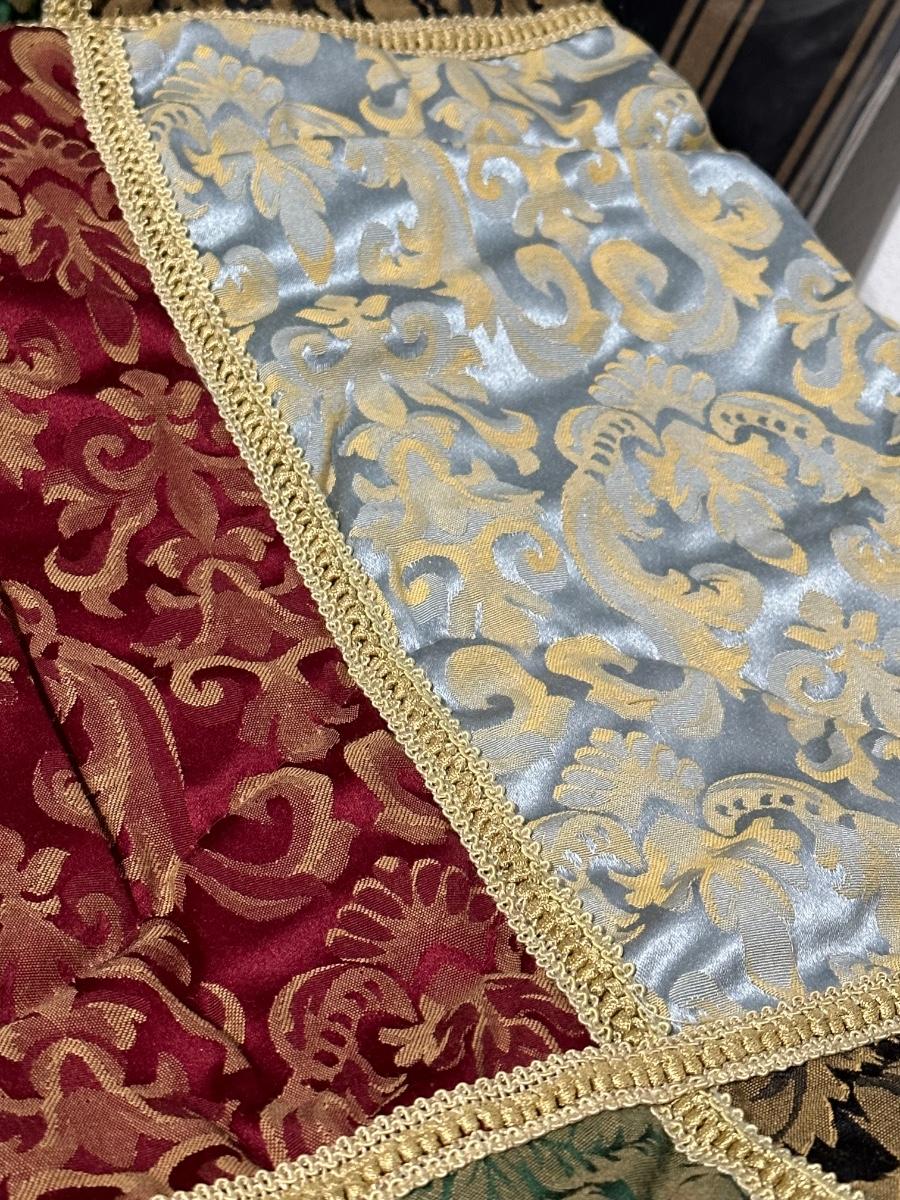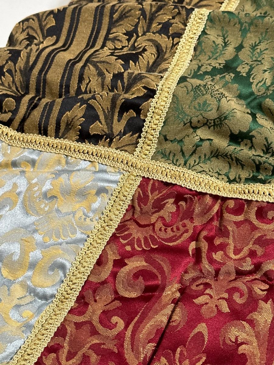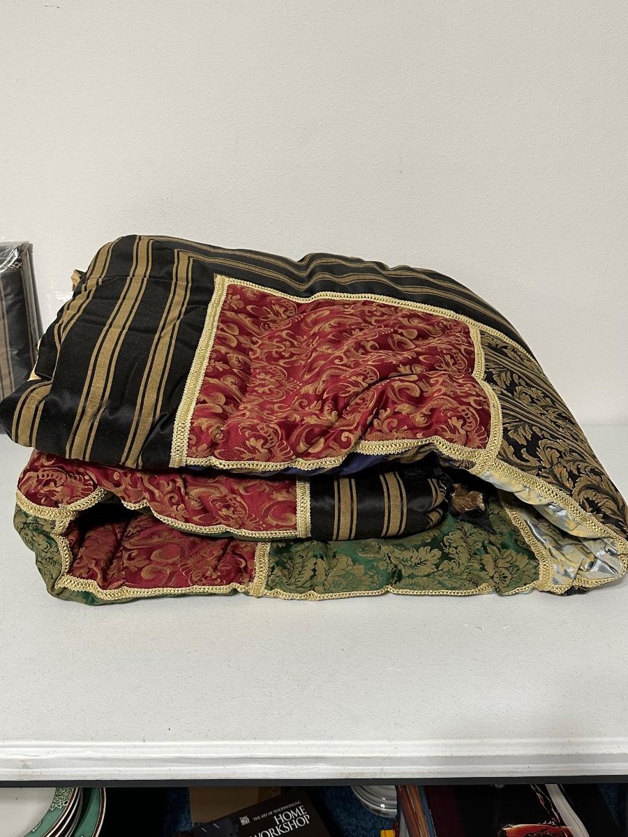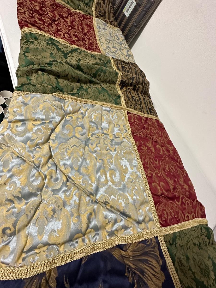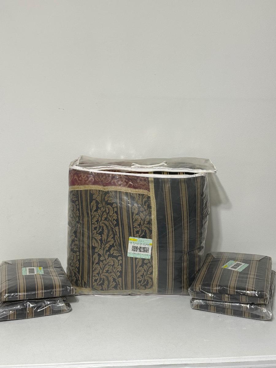 Includes ~ Queen Comforter, Dust Ruffle, Pair of Shams, pair of Euro Shams and a Pair of 42 x 84 Curtain Panels