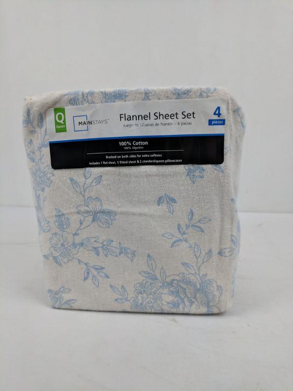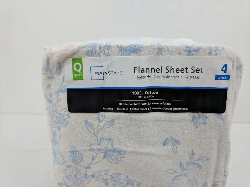 Queen Flannel Sheet Set, 4 pcs, Toil Blue - New